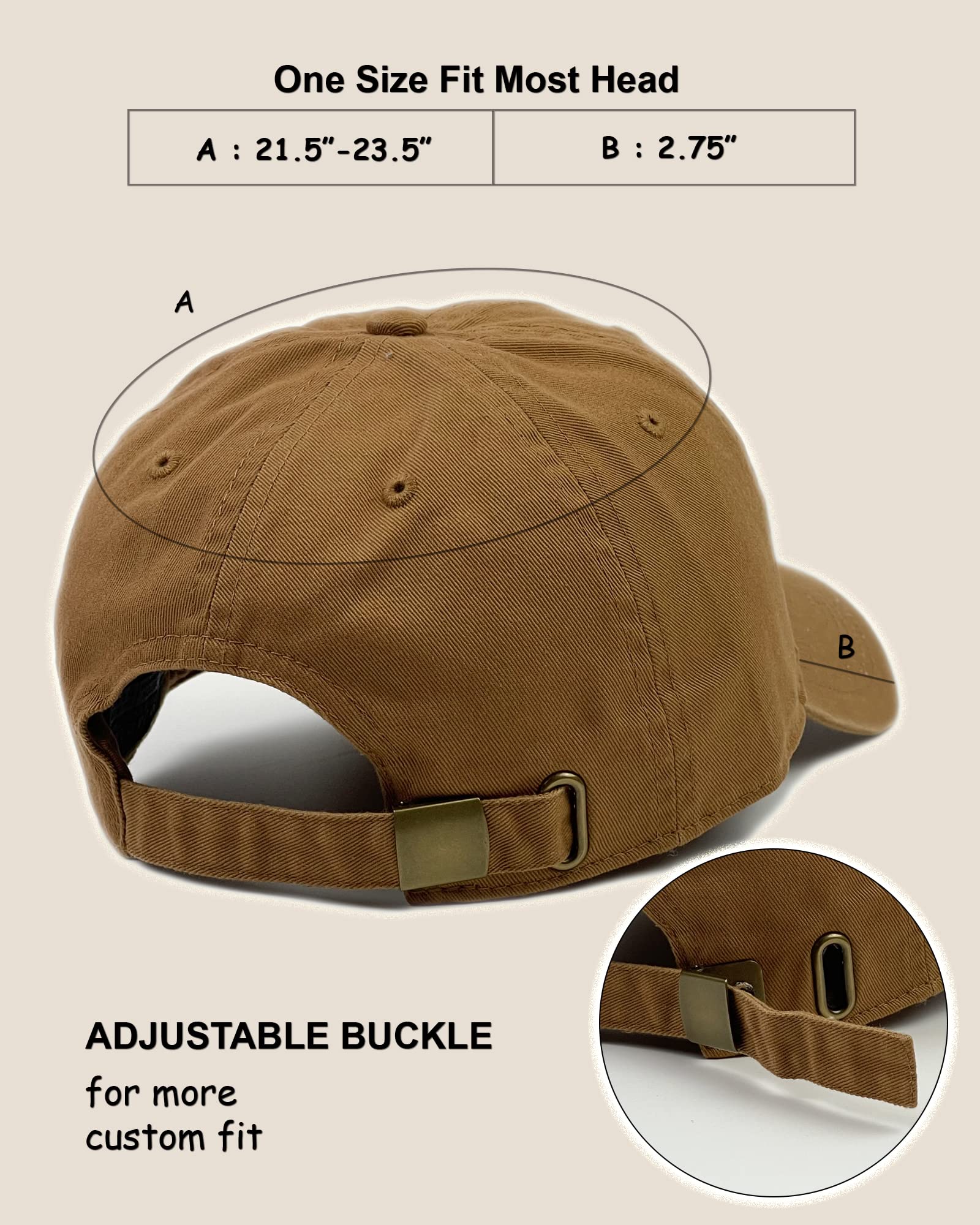 Adjustable Metal Buckle Back Closure : Great Fit for All Head Size. Hat Size Measurements : 21.5" - 23.5"