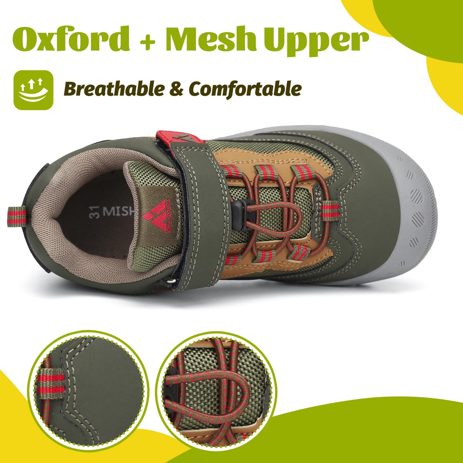 Breathable Soft Upper: Mishansha kids hiking shoes are made with oxford , ensure comfort for kids during long hours of wear. Also the soft breathable inner of kids sneakers can keep kids boys feet dry