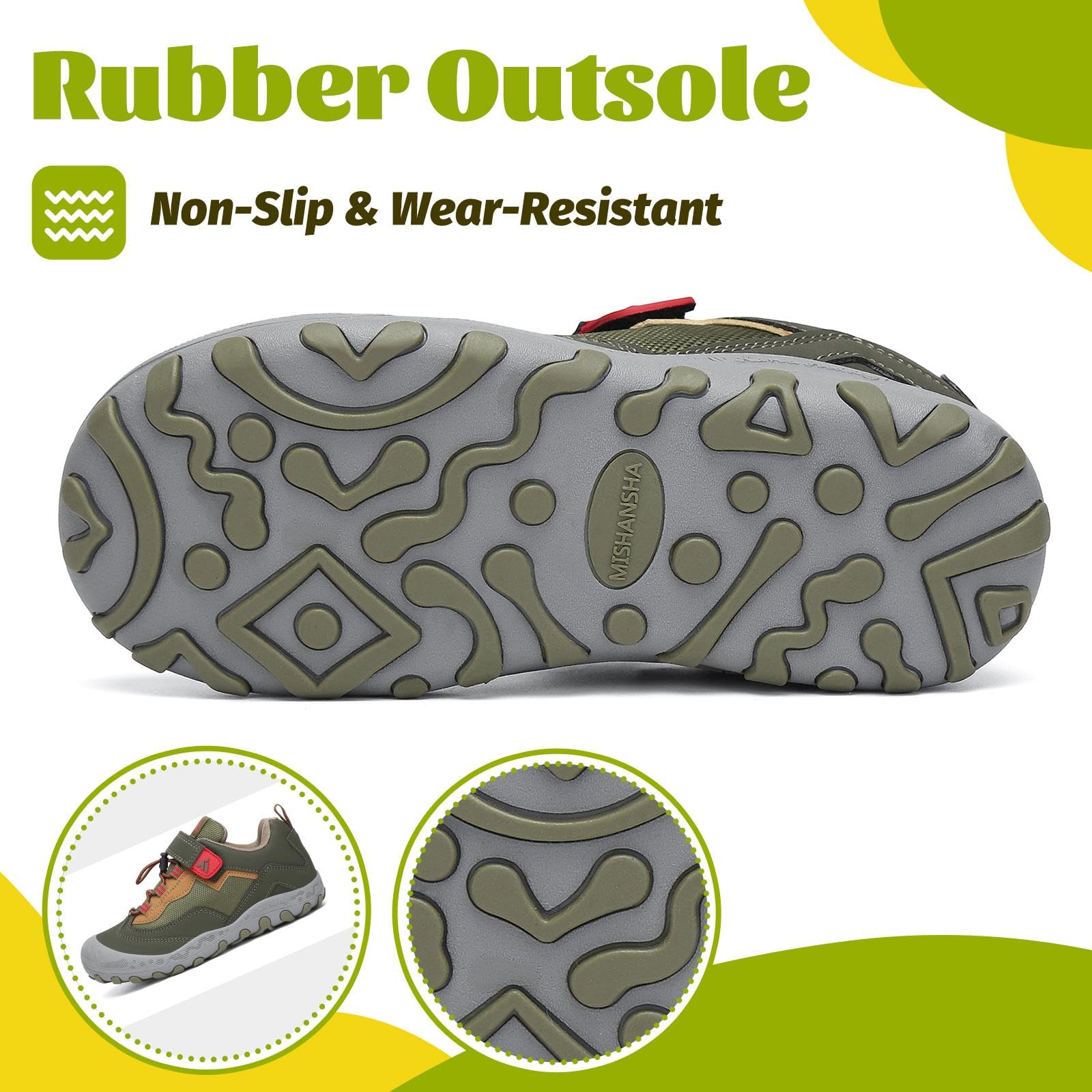 Slip-Resistant Rubber Sole: Kids hiking sneakers are made with rubber outsole for durable and non-slip ensures stability and good support during active play or challenging hikes