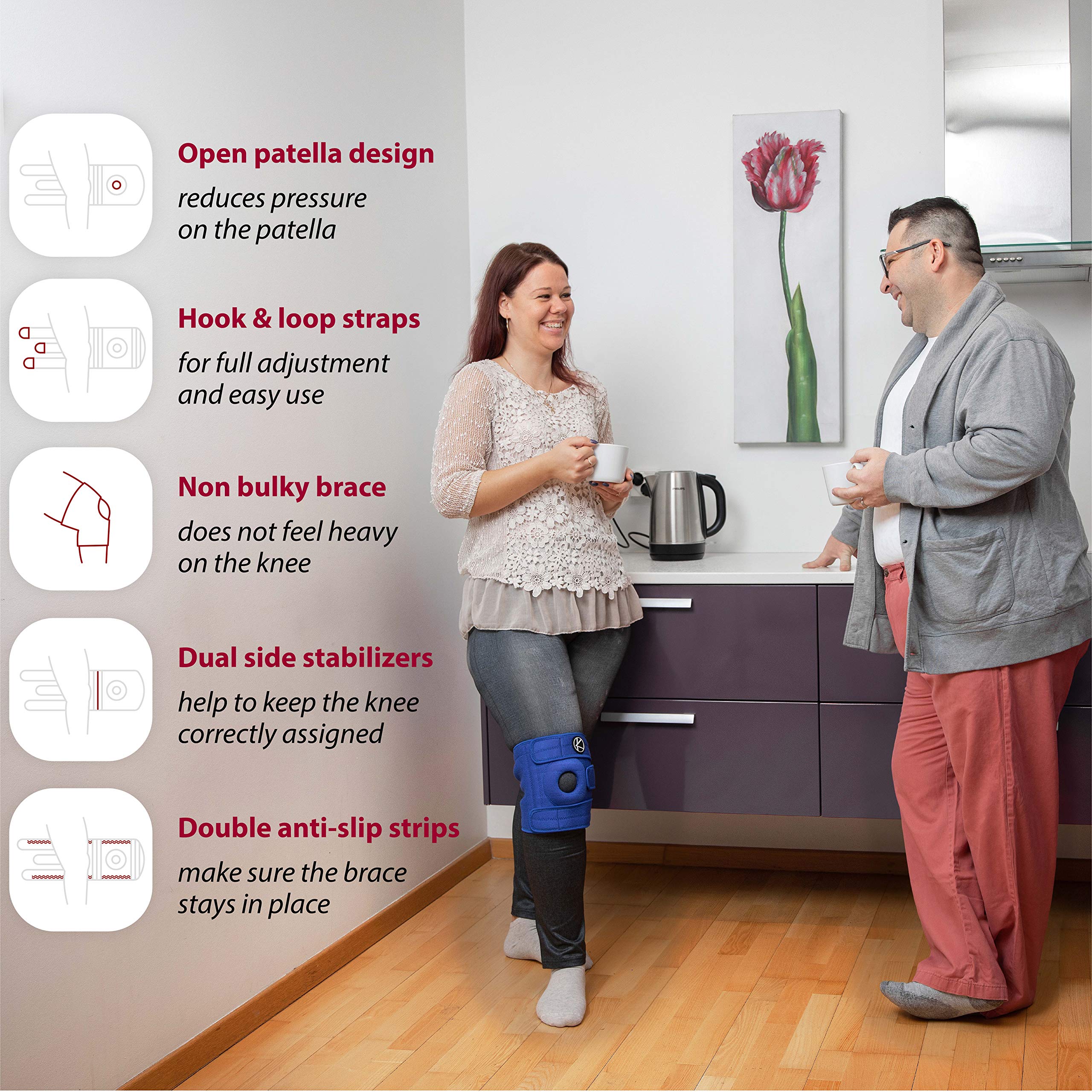 Plus size knee brace for women & men - Size 2(XL/XXL/3XL) plus size adjustable support offers high level support. The side stabilizers give more stability than knee compression sleeve and patellar tendon support strap.