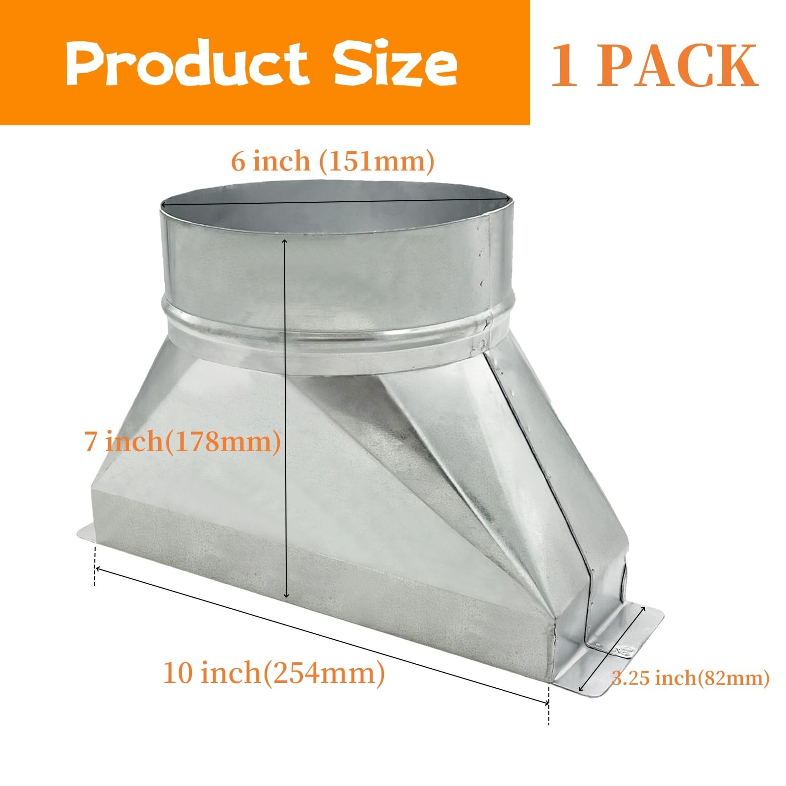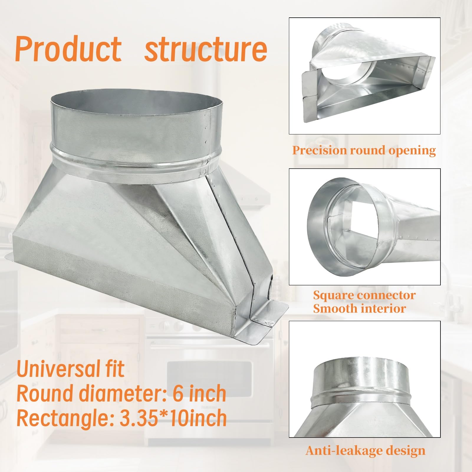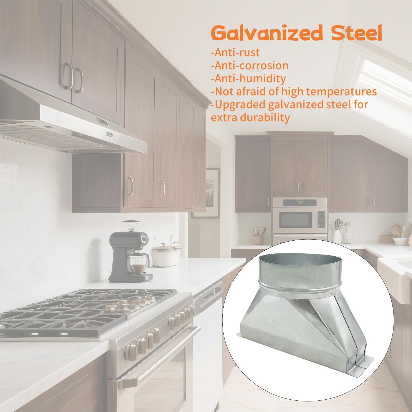 Professional Microwave Vent Kit - 6" Round & 10"x3.25" Rectangular Adapter Multi-System Compatibility Seamlessly connects over-range microwaves to wall/roof vents with dual-size design (6" round hole + 10"脳3.25" rectangular duct). Ideal for residential kitchens, RV retrofits, and light commercial hood systems Premium Galvanized Steel Construction Heavy-duty galvanized steel vent cover resists rust and corrosion.