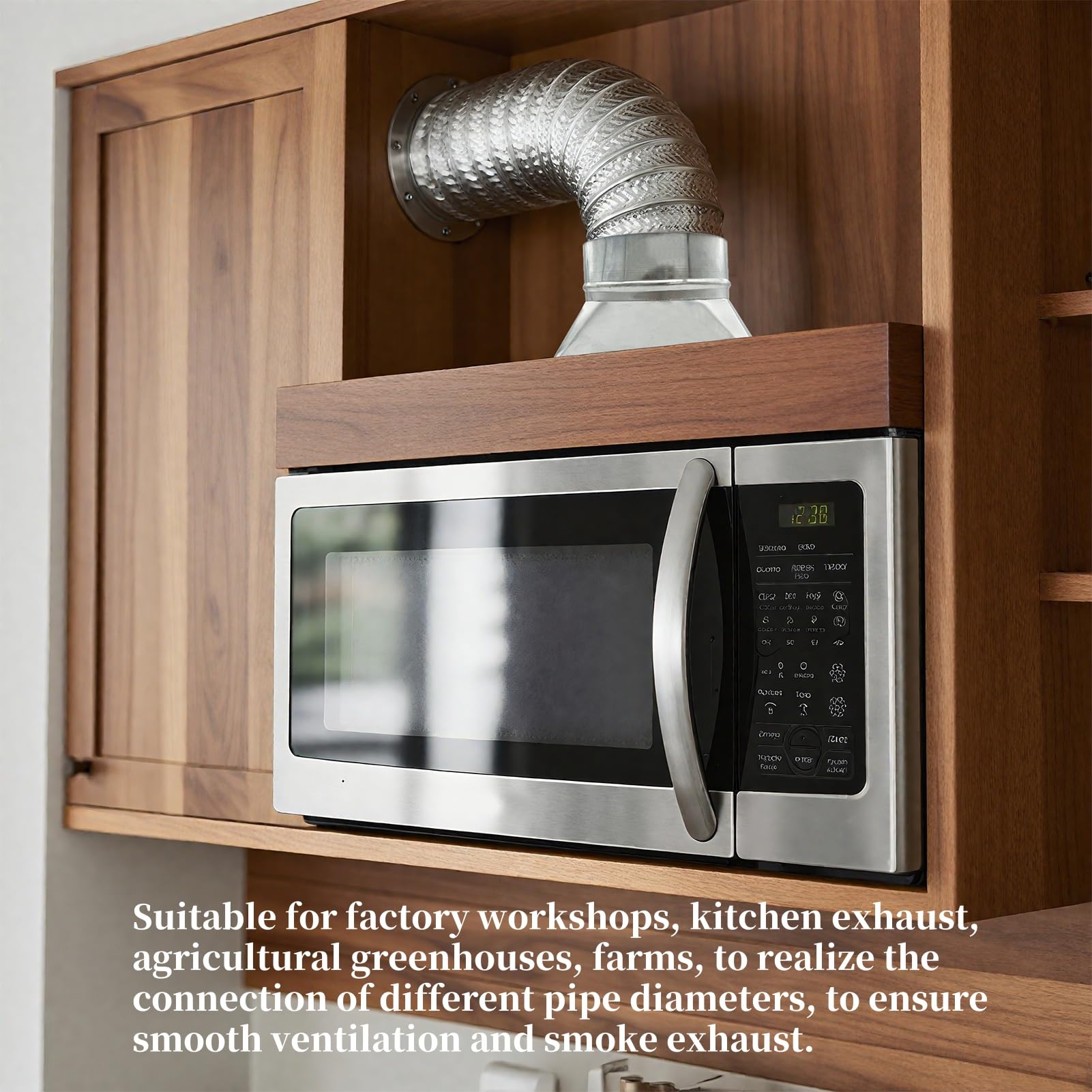 Versatile Venting Adapter Kit:Compatible with 6-inch ducting for apartment kitchen remodeling, RV microwave venting, commercial grease systems, light industrial equipment cooling, and most residential and commercial microwave models