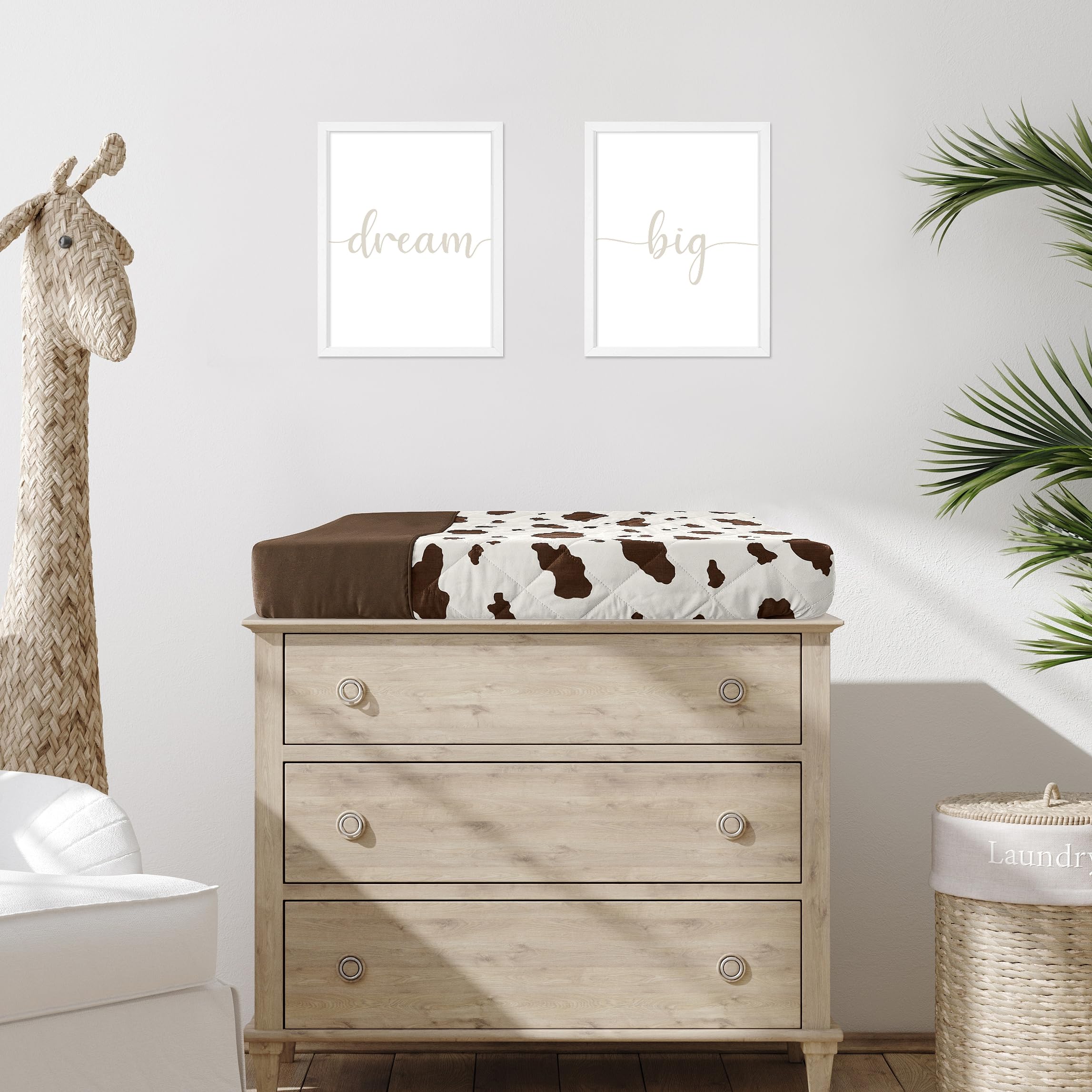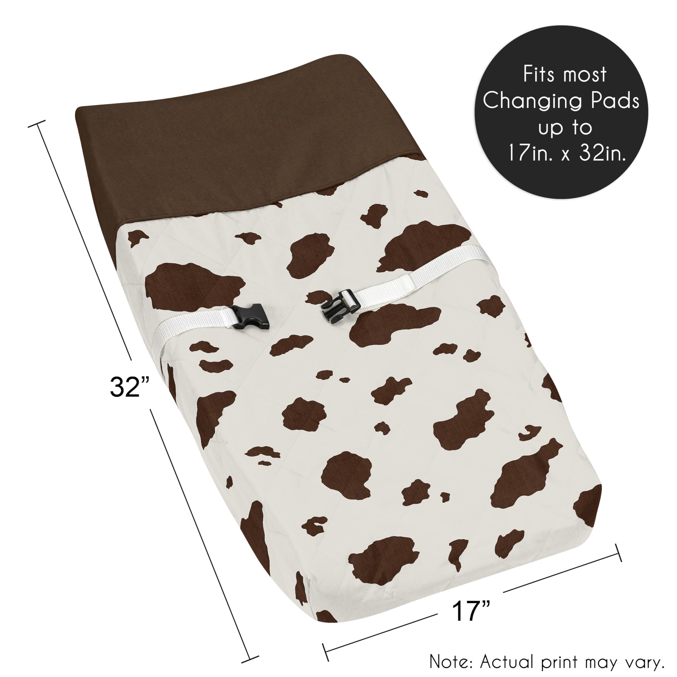 This brushed microfiber diaper pad cover features an exclusive design of a chocolate brown, beige, cream and off white vintage country animal cow print for wild west retro horse southwest Western Cowgirl Collection