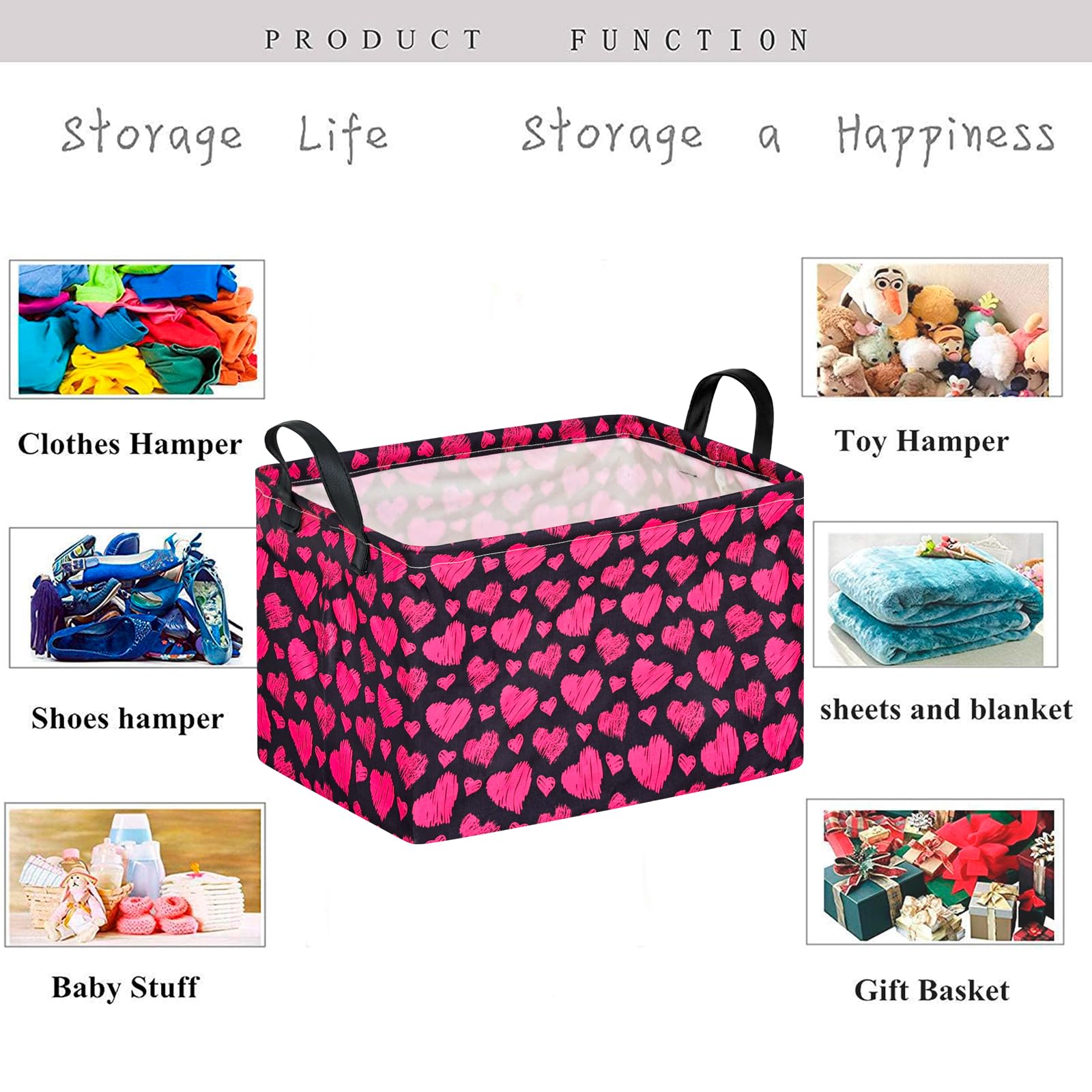 ENJOY A CLEAN & NEAT ROOM NOW Imaging a messy room that all of daily sundries left everywhere. Imaging looking round for the item you need to use urgently in a messy room. Imaging the kids or pets left the sundries all over the place. You need a good helper to help you solve these problems! With our storage bins/laundry hamper, you will have a designated spot to neatly store items and keep your family and living spaces organized and efficient while still being within the comfort of your home. SAVE SPACE IN YOUR RESIDENCE To be a competent helper, it can not only help you organize and store the sundries to save room space, but also can be folded when in no use. SAVE YOUR PRECIOUS TIME We deeply know that time is very precious and important to you. Our storage bins will help you sort and store your contents tidily. Don't waste time to look for them any more! Just feel free to handle big things and leave us small things. ORGANIZE IN STYLE - START FROM NOW ON With modern and stylish design, our storage bins combine both of the ornamental and practical forms. They are not only household life good helpers but also charming decorations.