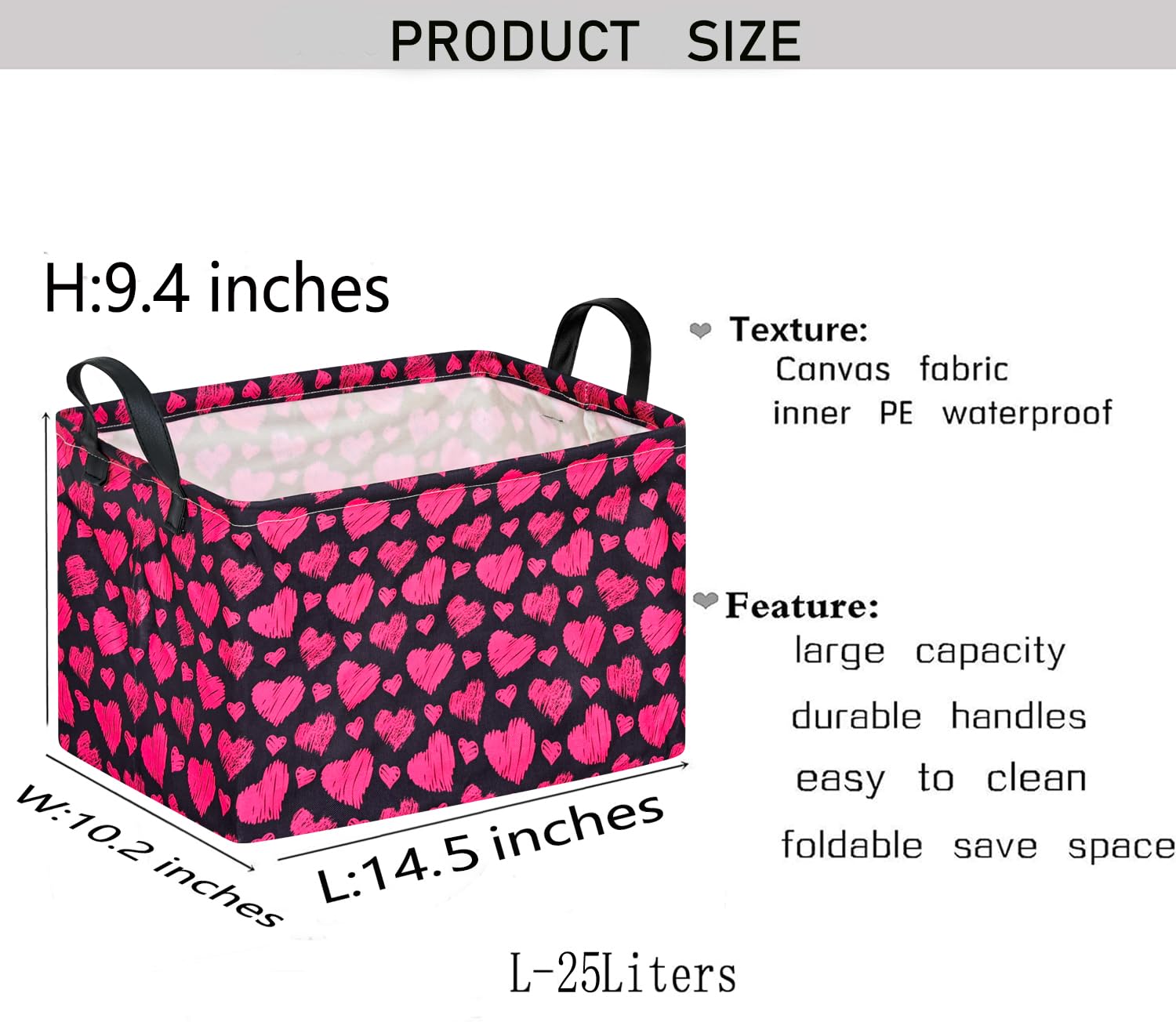 SIZE: 14.5(L)×10.2(W)×9.4(H)inches,perfect size for toy storage,baby basket,toy basket,toy bin and toy organizer and storage for boys and girls.