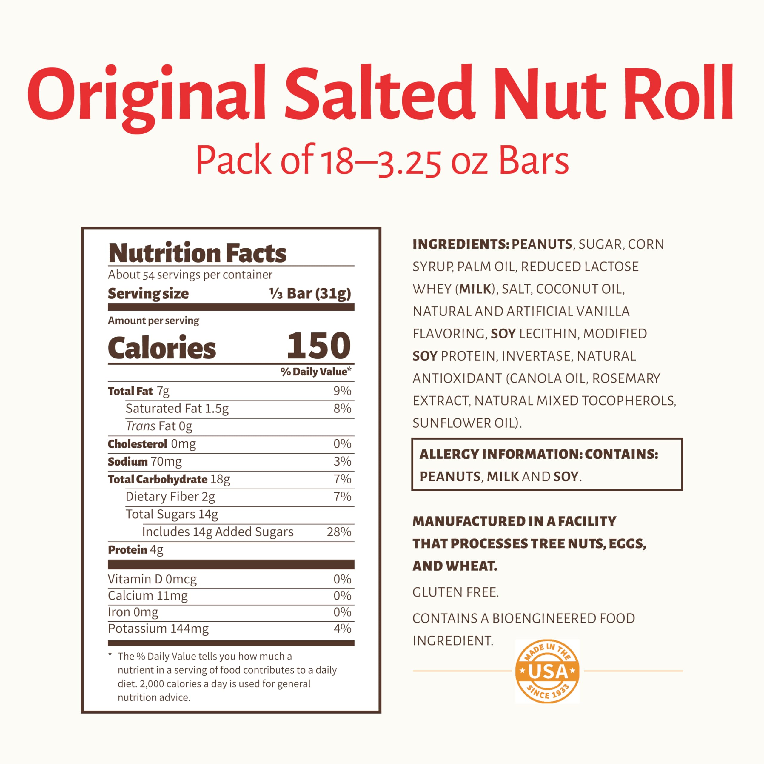 Pearson's Salted Nut Roll is an original salty-sweet treat. Each bar is loaded with crunchy roasted peanuts, golden caramel, and creamy vanilla nougat.