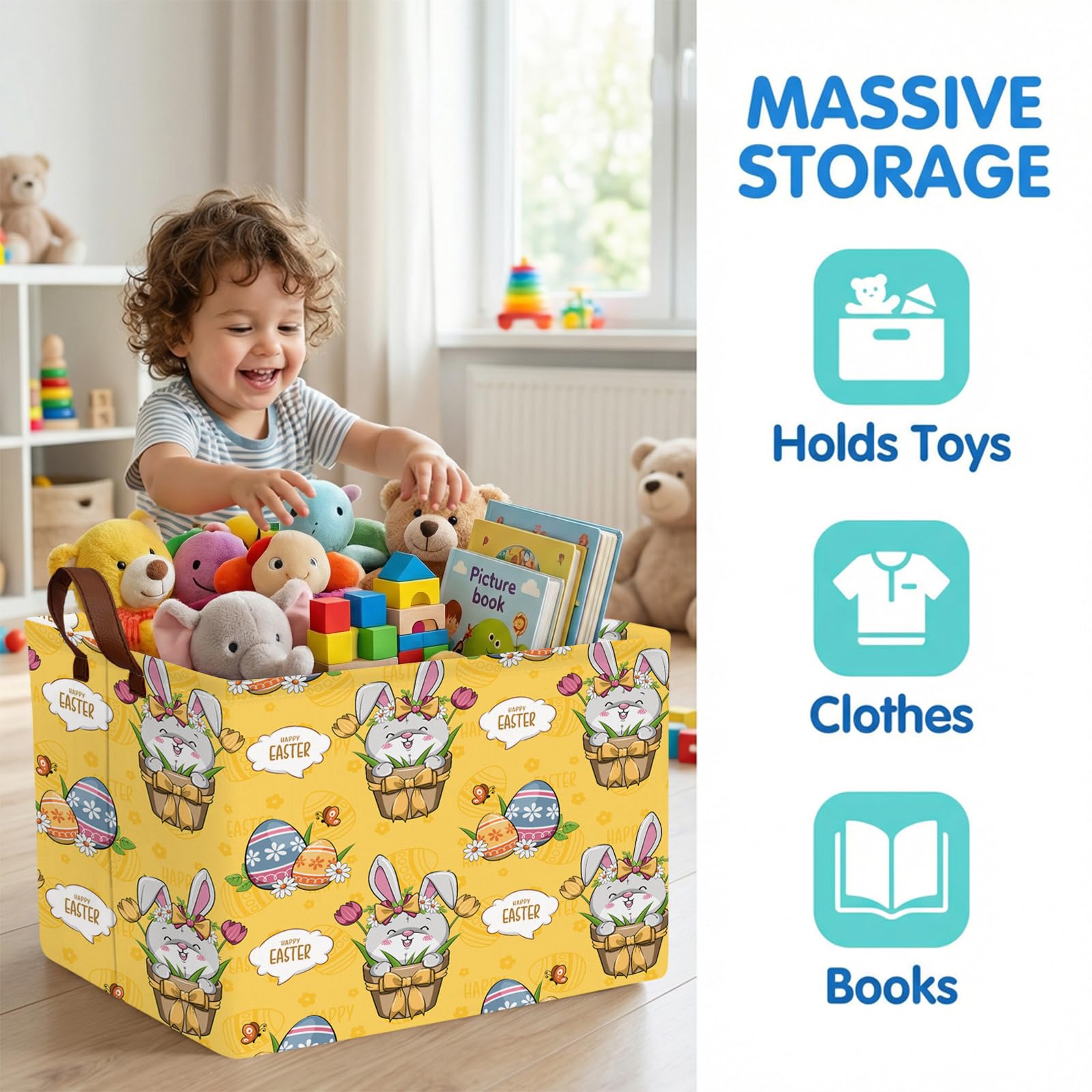 【BASKET MULTIPURPOSE】: An empty Easter gift basket can hold more gifts and is the perfect gift for friends. It is also very suitable for storing children's toys, clothes, and household items in daycare centers, laundry room,kid's room, game room, craft room, bathroom, bedroom, and cloakroom.Using this basket for decoration during Easter is also an ideal choice for searching for Easter eggs or storing holiday gifts and toys.