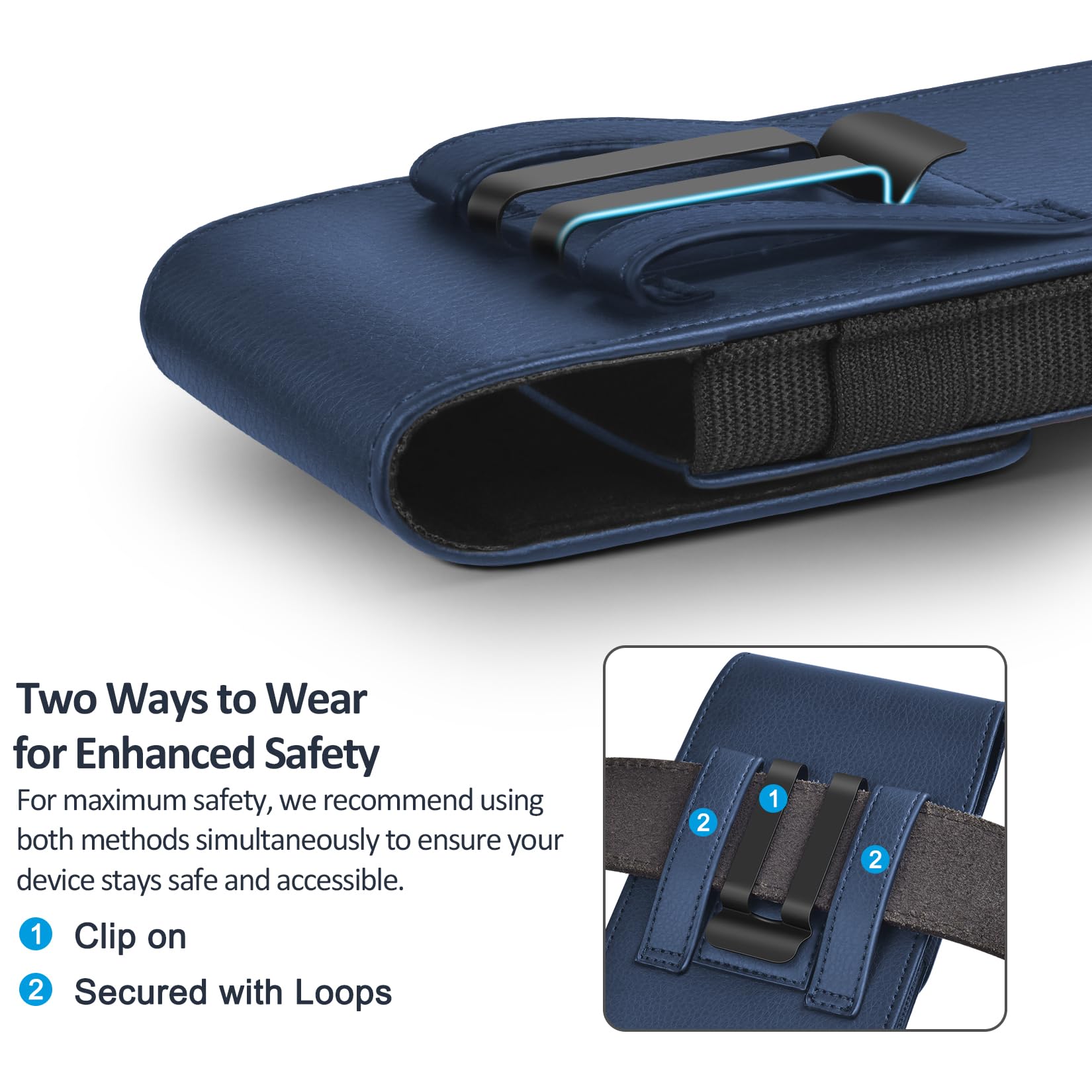 Multiple Wearing Options: Equipped with a custom non-slip belt clip and belt loop, suitable for standard 1.8-inch belts. It offers various wearing choices, and for added security, it is recommended to use both options simultaneously