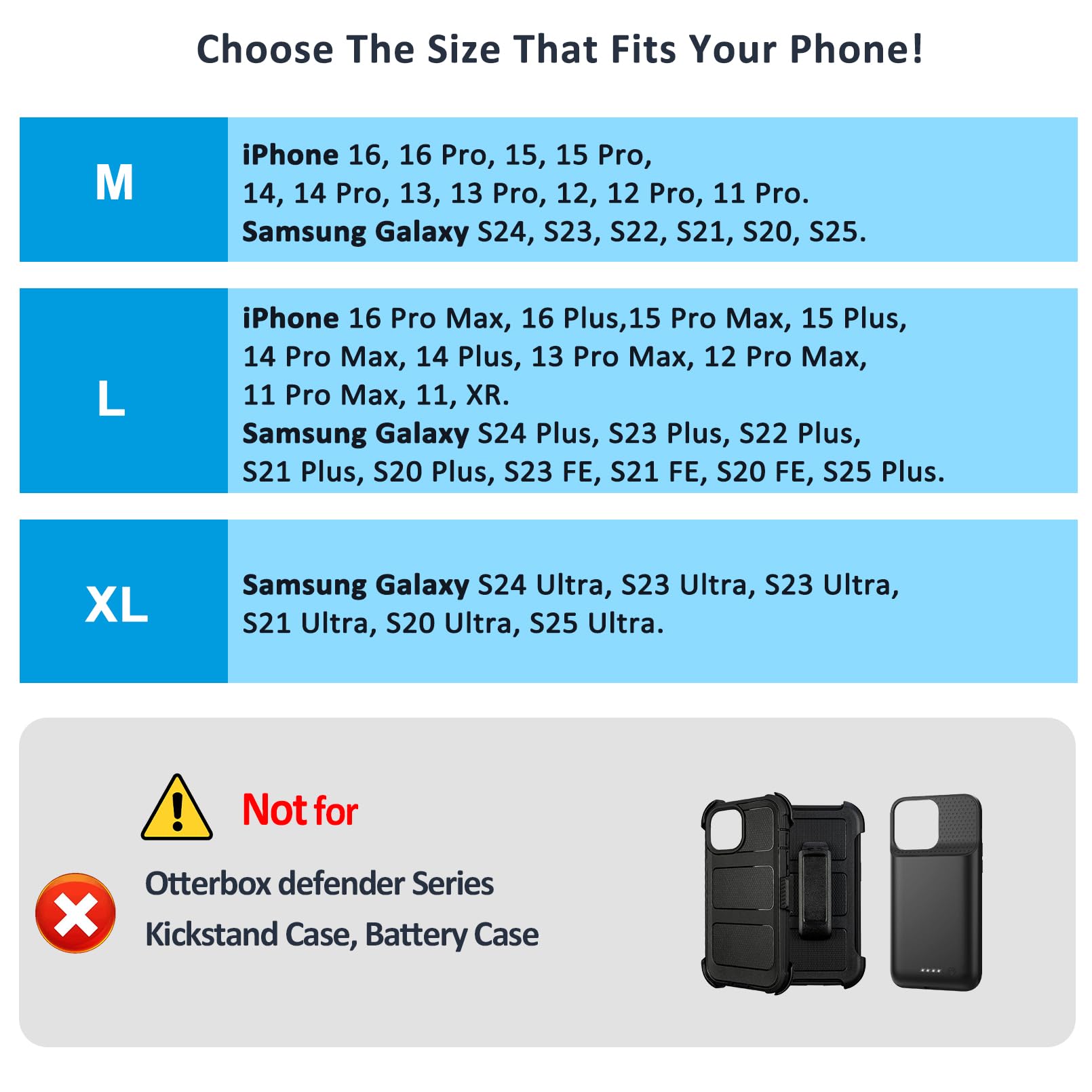 Wide Compatibility: This XL-size phone holster fits for All Samsung Galaxy Ultra models. It is compatible with most protective cases (excluding Otterbox Defender series and battery cases)