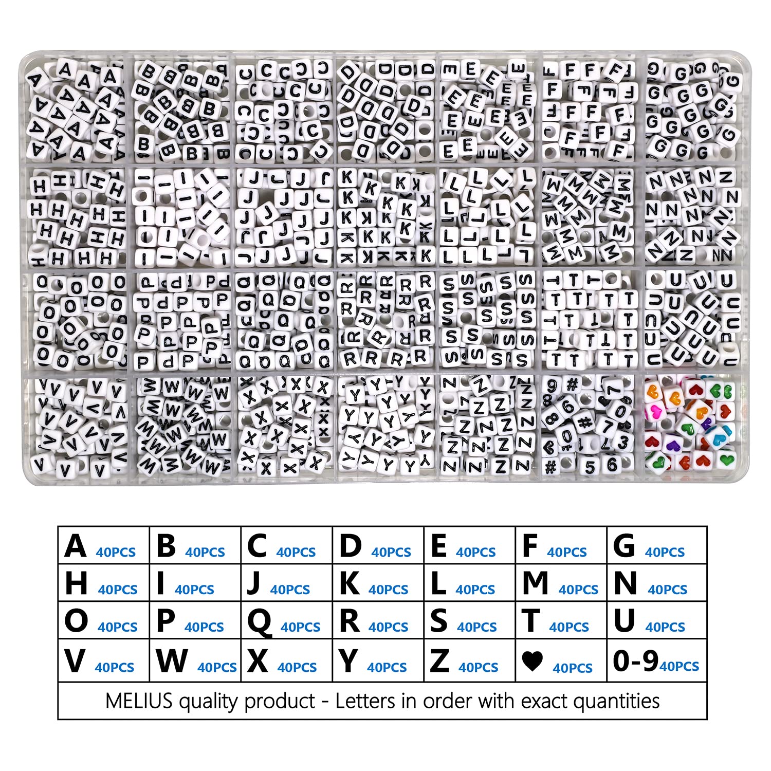 HIGH QUALITY: MELIUS square white letter beads are made of high quality acrylic brand new raw material with smooth surface, clear lettering and not easy to fade. The holes are clean and stain-free, suitable for making fine jewelry.