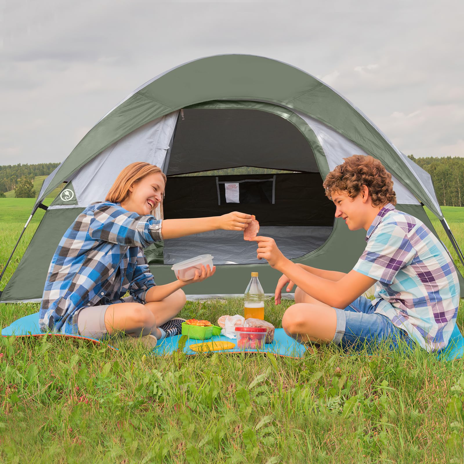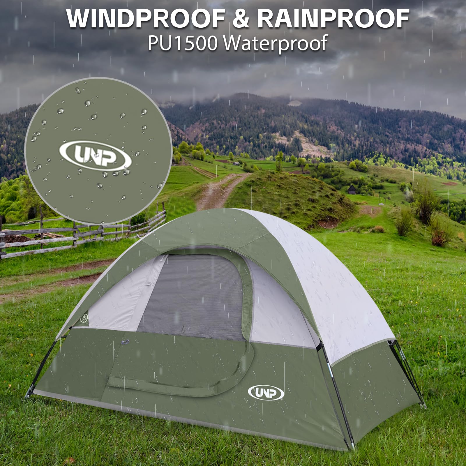 Windproof & Rainproof: The camping tent is made of stronger tear-resistant polyester.It come with a removable rainfly and two zippers designed for keeping the rain outside the tent. The ropes of tent and piles ensure safety and stability.