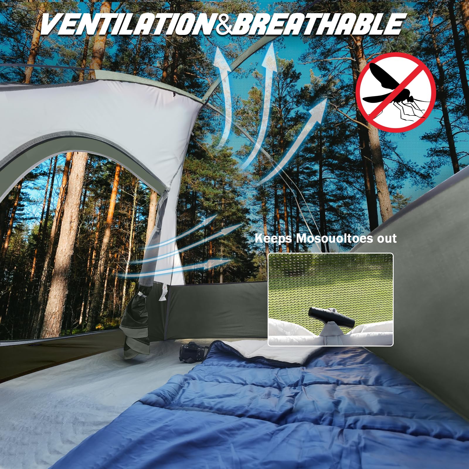 Comfortable Design: Skylight net and larger mesh window designed enhances breathability and comfortable. Interior storage pocket designed to keep your contents neat and organized, great ventilation and convenient for enjoying outdoor views and your free time.