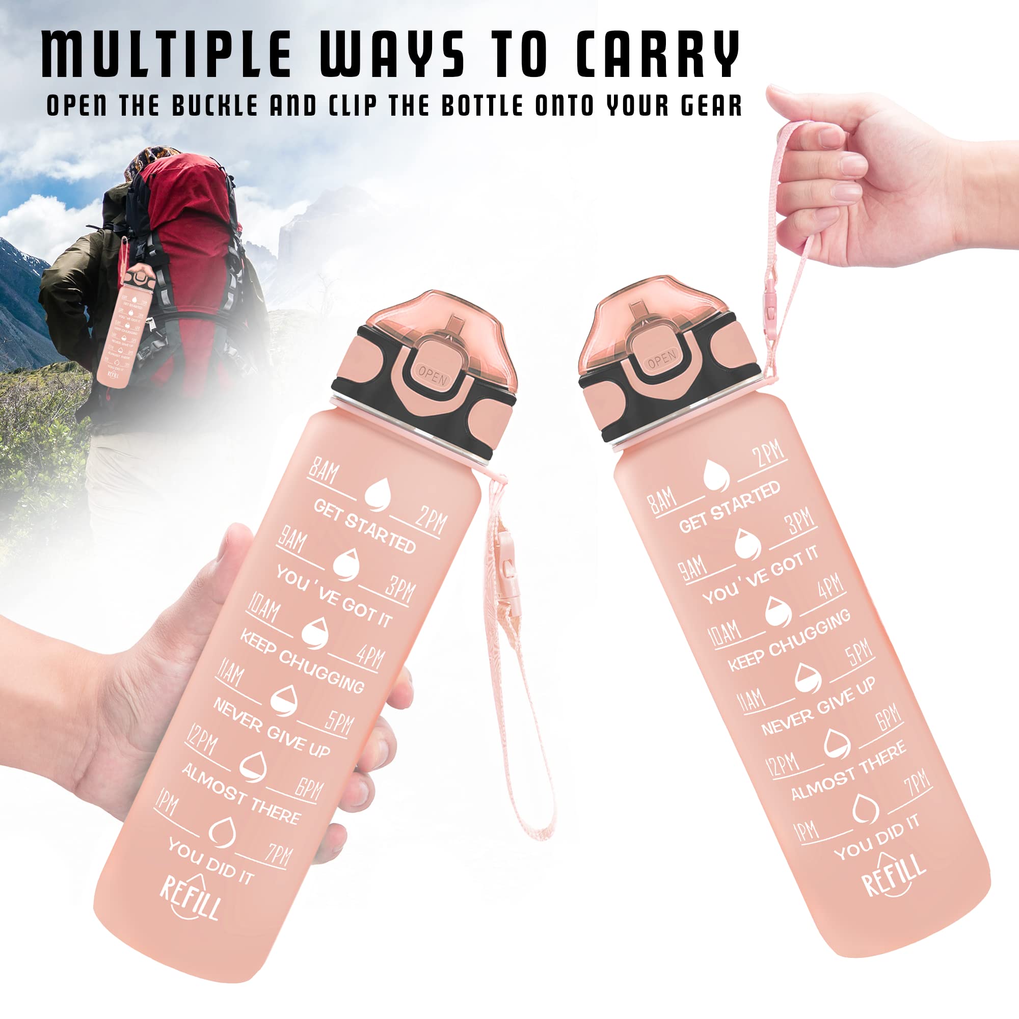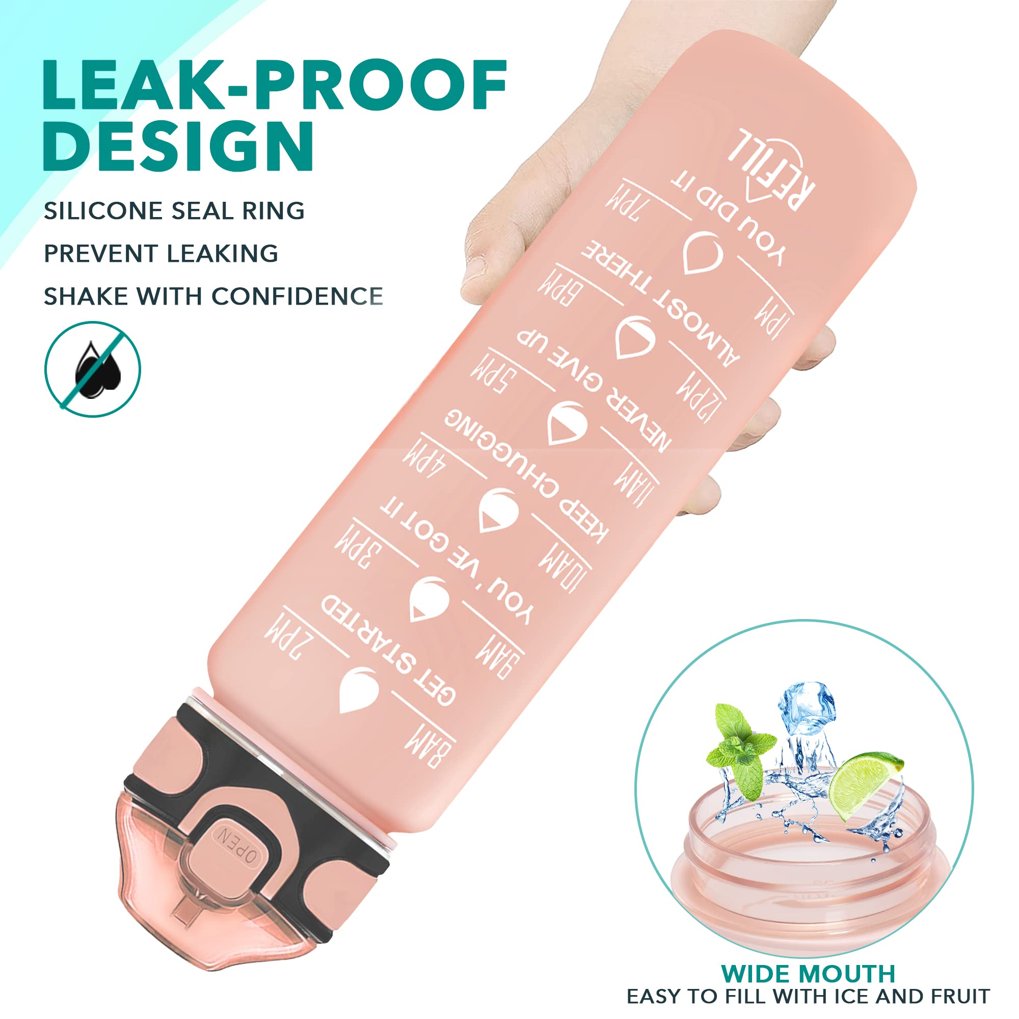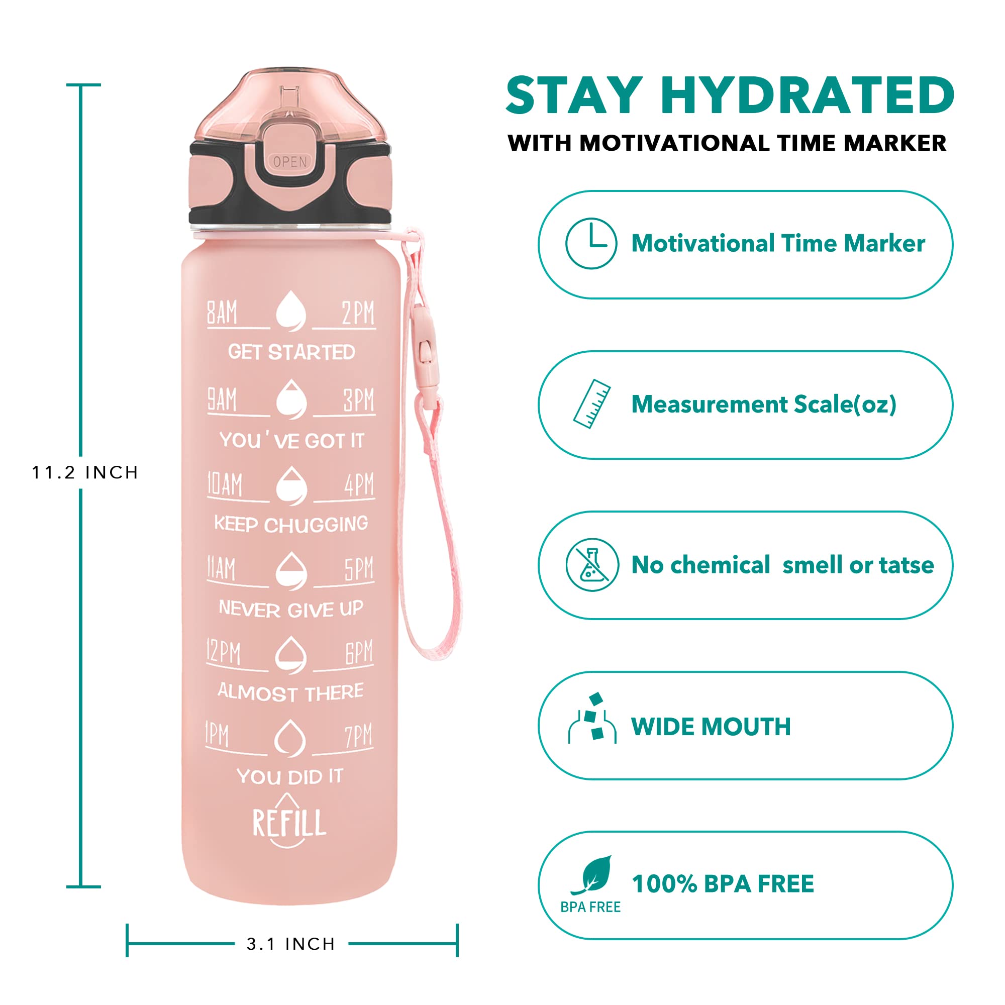 Motivational Quote & Time Marker: 32 oz water bottle with unique inspiration quote and time marker, reminding you to stay hydrated.