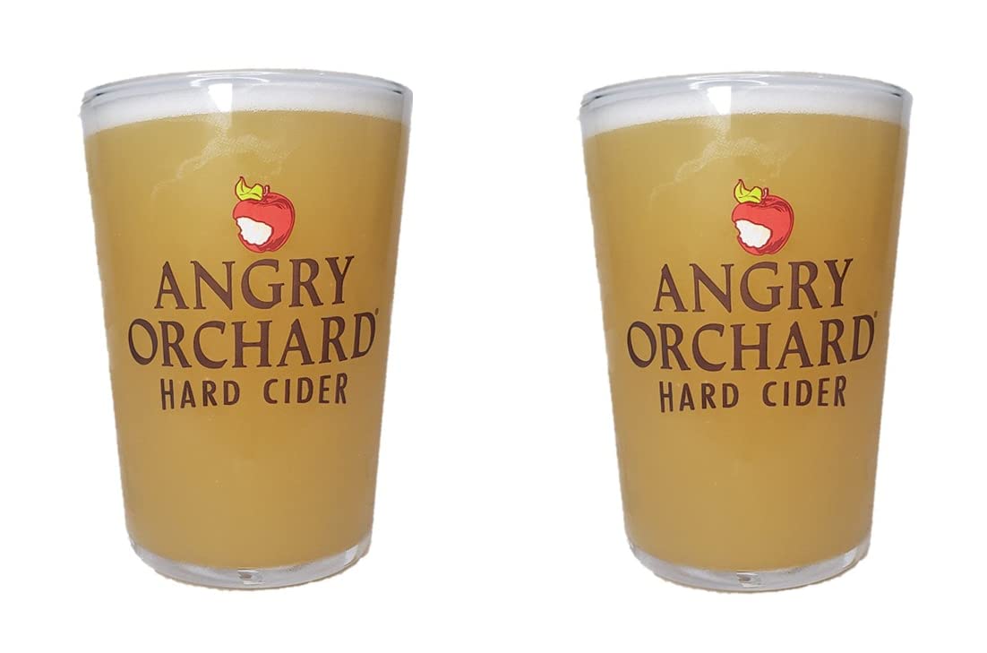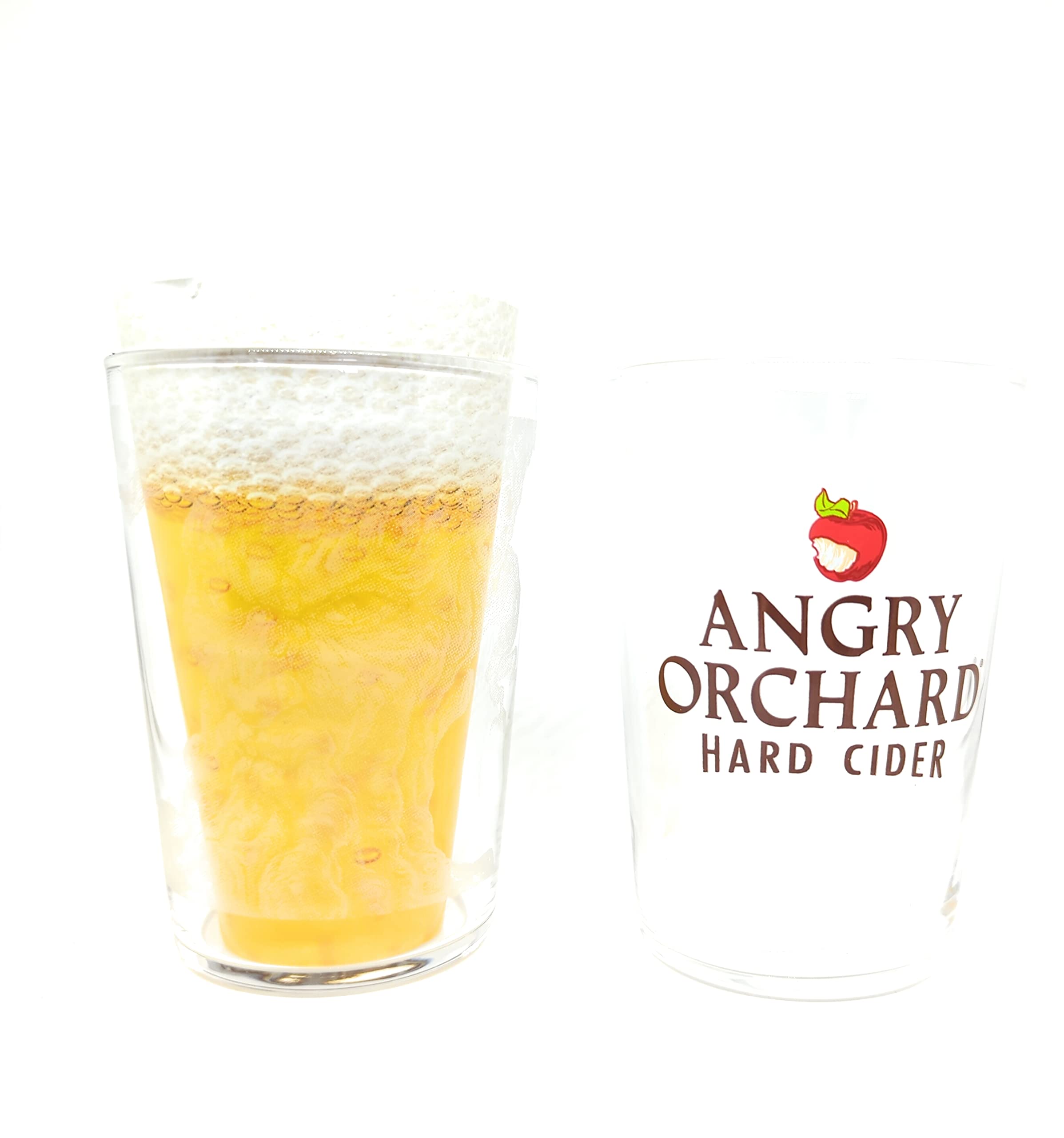 Set of 2 Angry Orchard White Satin Signature cider glasses. Officially Licensed.