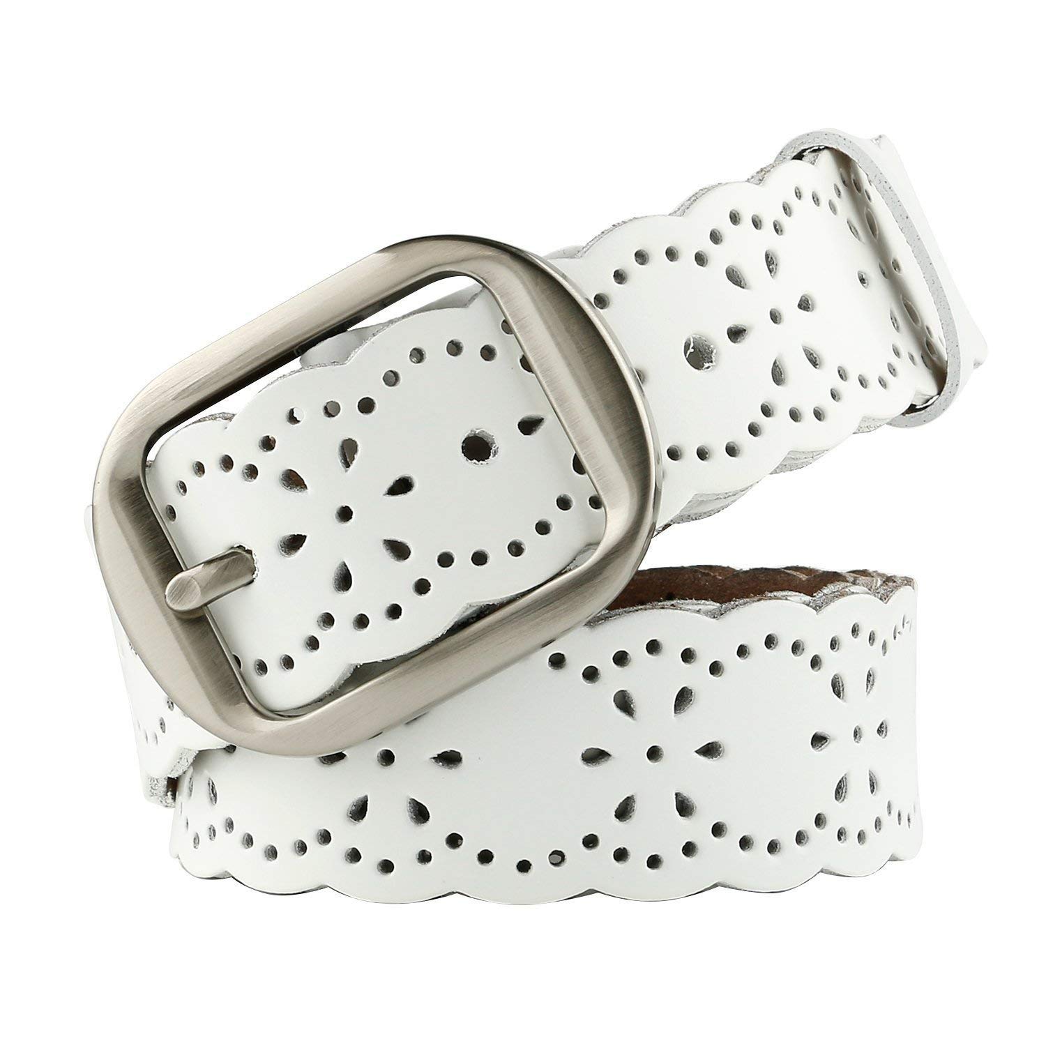 Size For This White Belt: Four sizes available: 39" long belt for waist under 33", 43" long belt for waist under 37", 47" long belt for waist under 41"; 1.38 inch wide strap will be easy to fit most pants loops