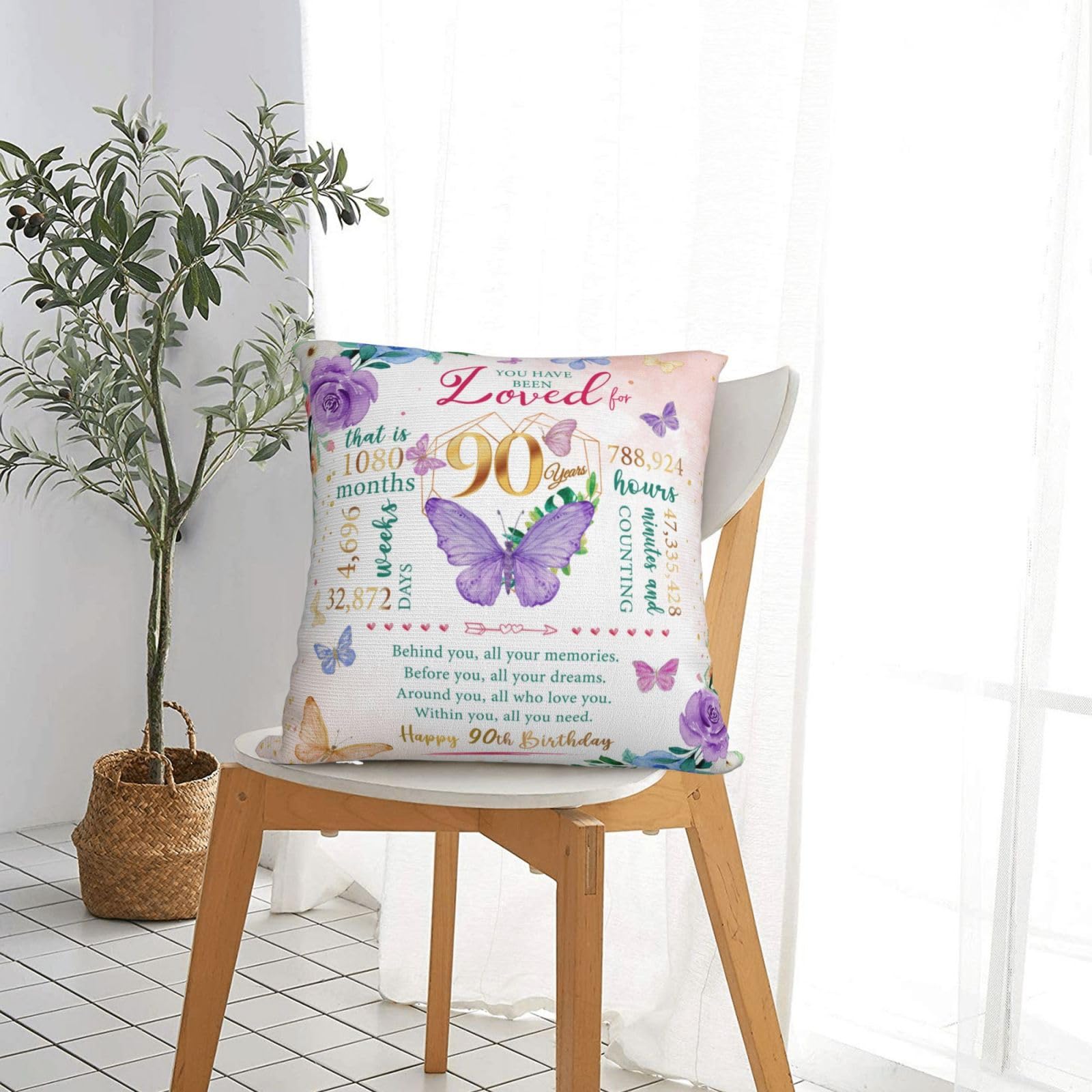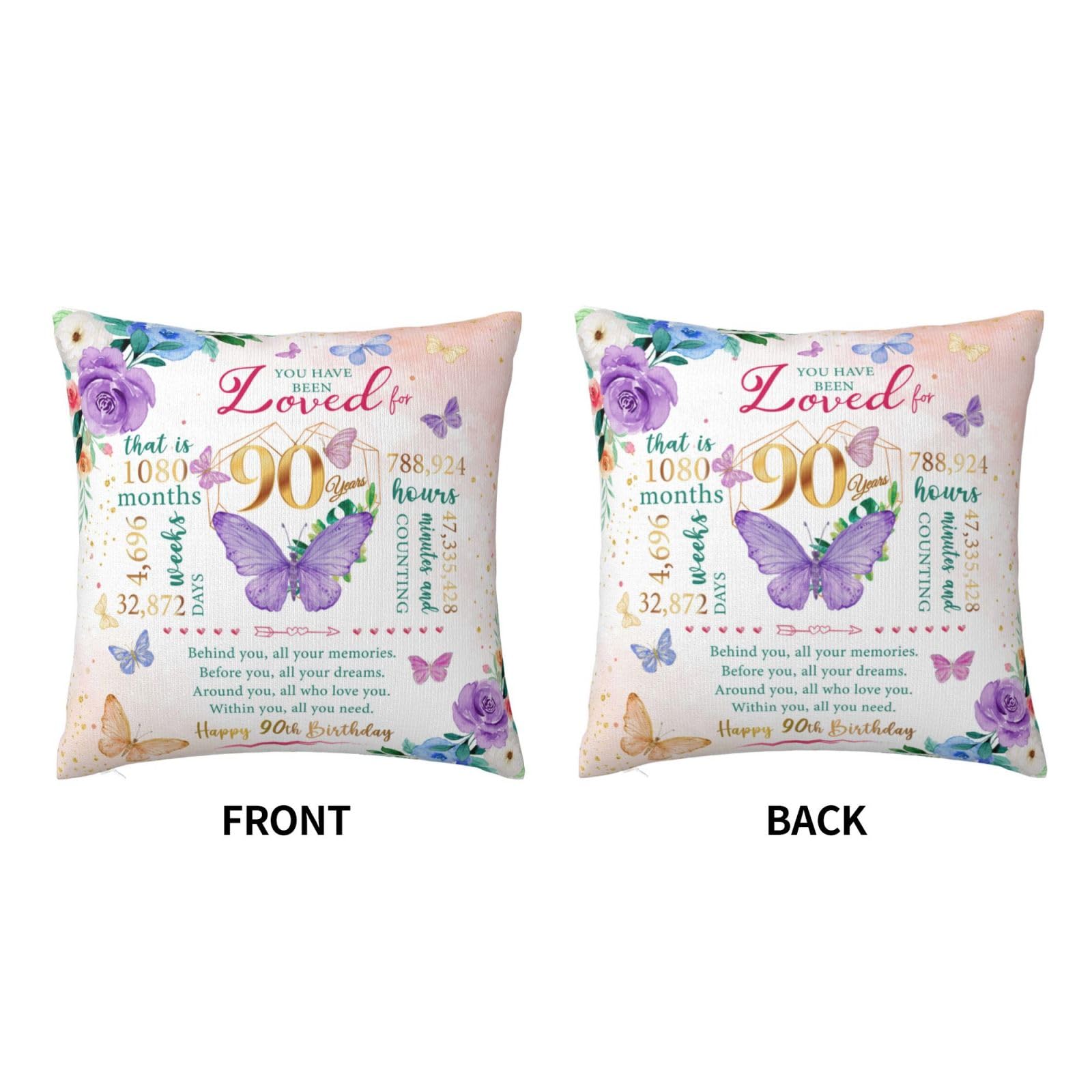 APPLICABLE SCENARIOS: The versatility of this pillow cover goes beyond its aesthetic appeal. Not only is it an exquisite pillowcase, but it also as a decor piece adds a touch of birthday cheer to the birthday celebration. A thoughtful throw pillowcase gift for the 90th female will be the perfect addition to decorating sofas, beds, cars, seats, living rooms, bedrooms, benches, offices, and more