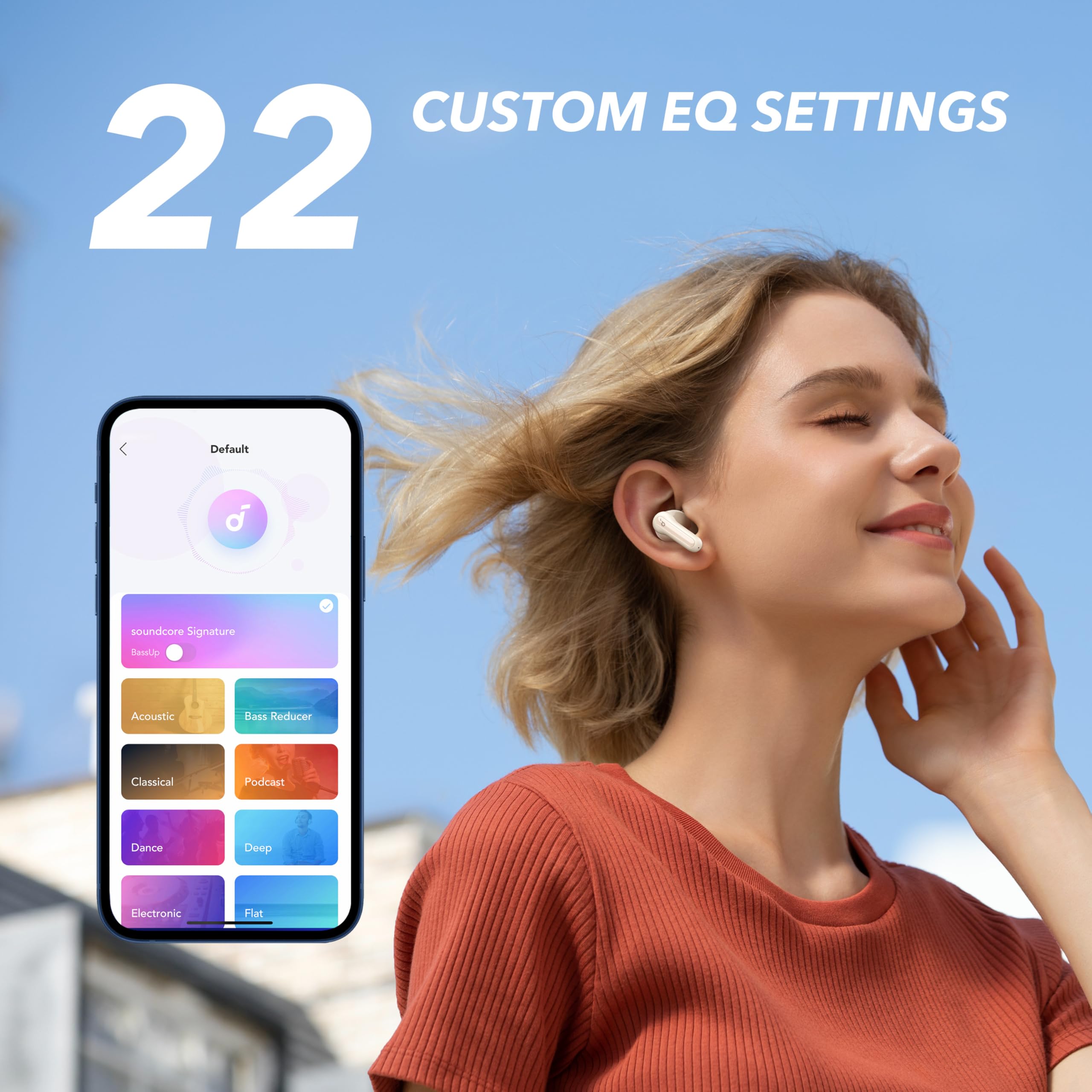 3 EQ Modes: Soundcore Signature, the default EQ, delivers well-balanced sound, while Bass Booster enhances bass-heavy music, and Podcast makes voices stand out clearly. To switch to a different mode, quickly press the right earbud 3 times. You will hear a tone for each successful switch.