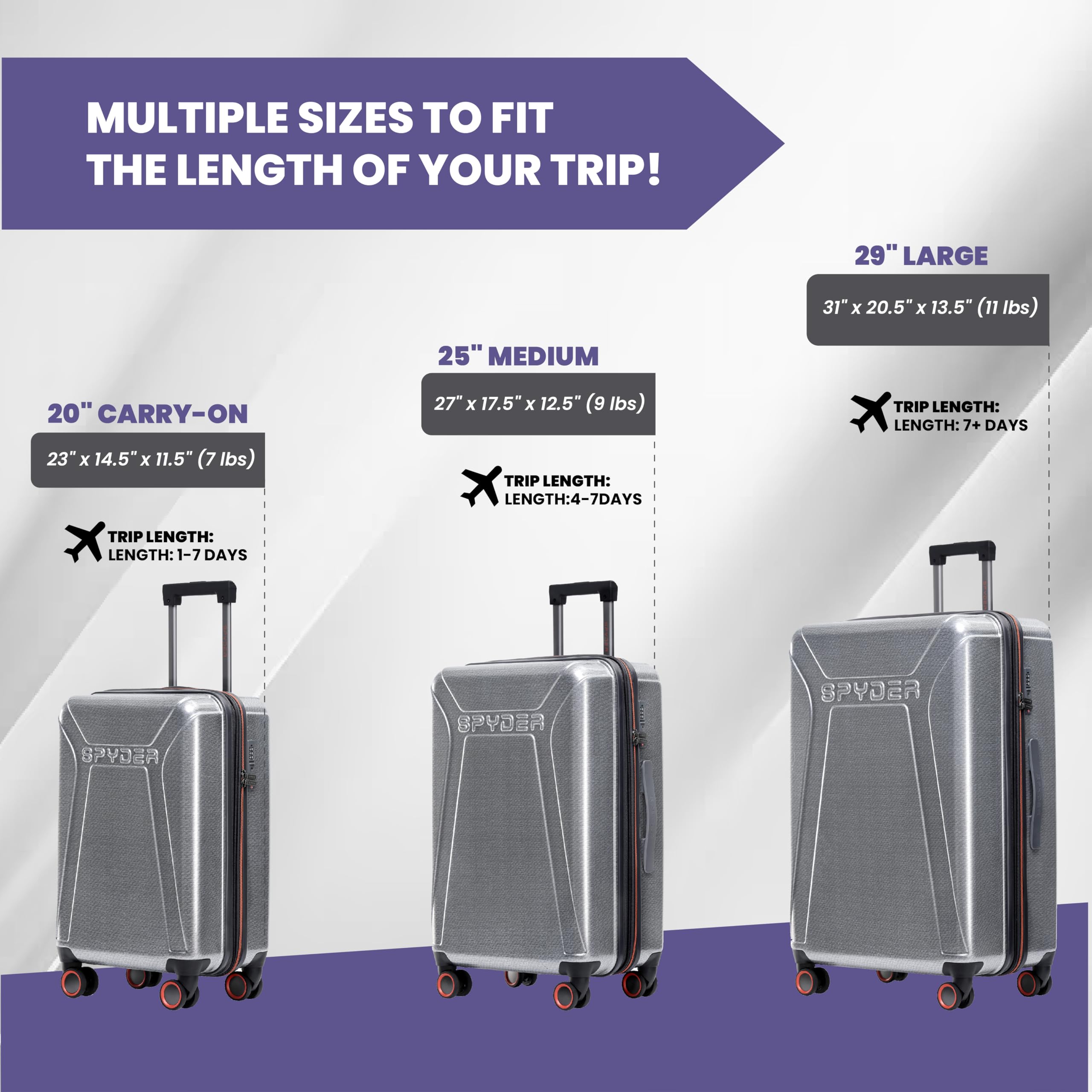 Enhanced Security and Warranty: Complete with a TSA-approved combination lock to secure your belongings and allow TSA access, all Spyder Luggage comes with a 5 Year Limited Warranty for peace of mind