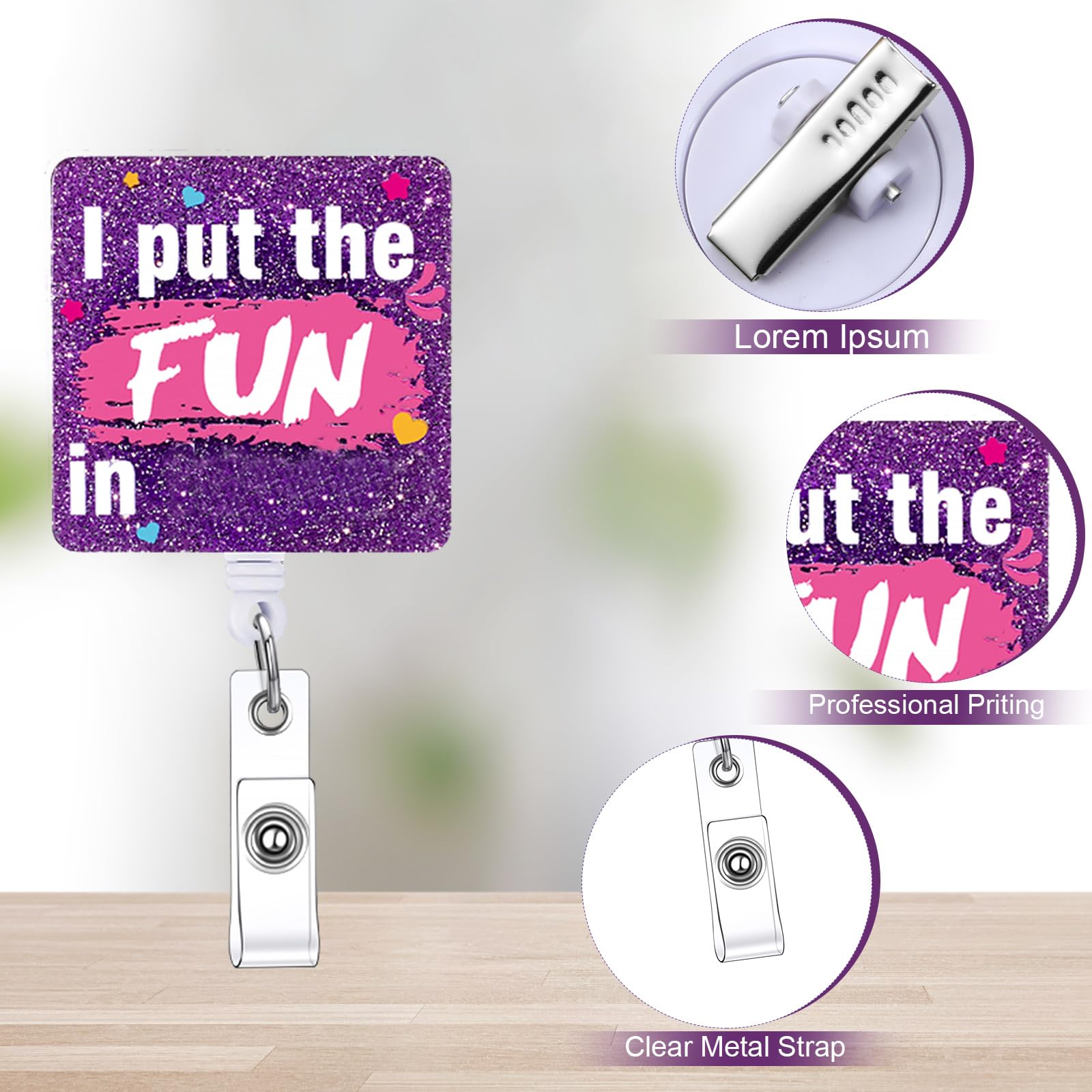 Glam up with Glitter Acrylic Material: snap out of the dullness with our funny retractable badge holder, made of glitter, acrylic material; With these shiny companions by your side, every day will feel like a walk on the red carpet; Just hold on to these little stars and let your shine trail behind