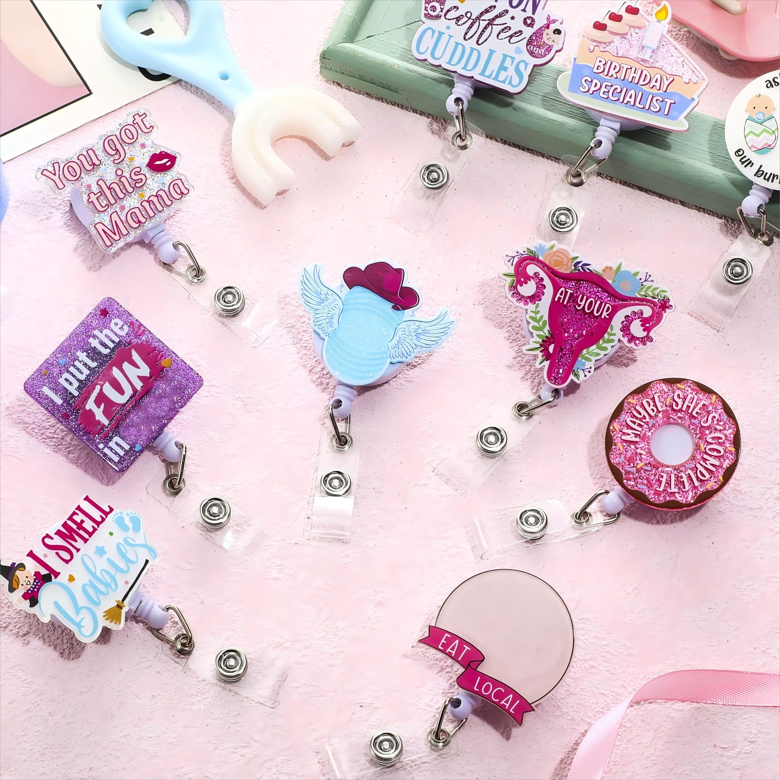 Fashionable Parade with Variety of Fun Designs: add a dash of glitter to your style tools with our labor and delivery nurse badge reels, coming in 10 kinds of fun filled designs to elevate your style; Their colors and captivating looks are sure to make them the star of your wardrobe