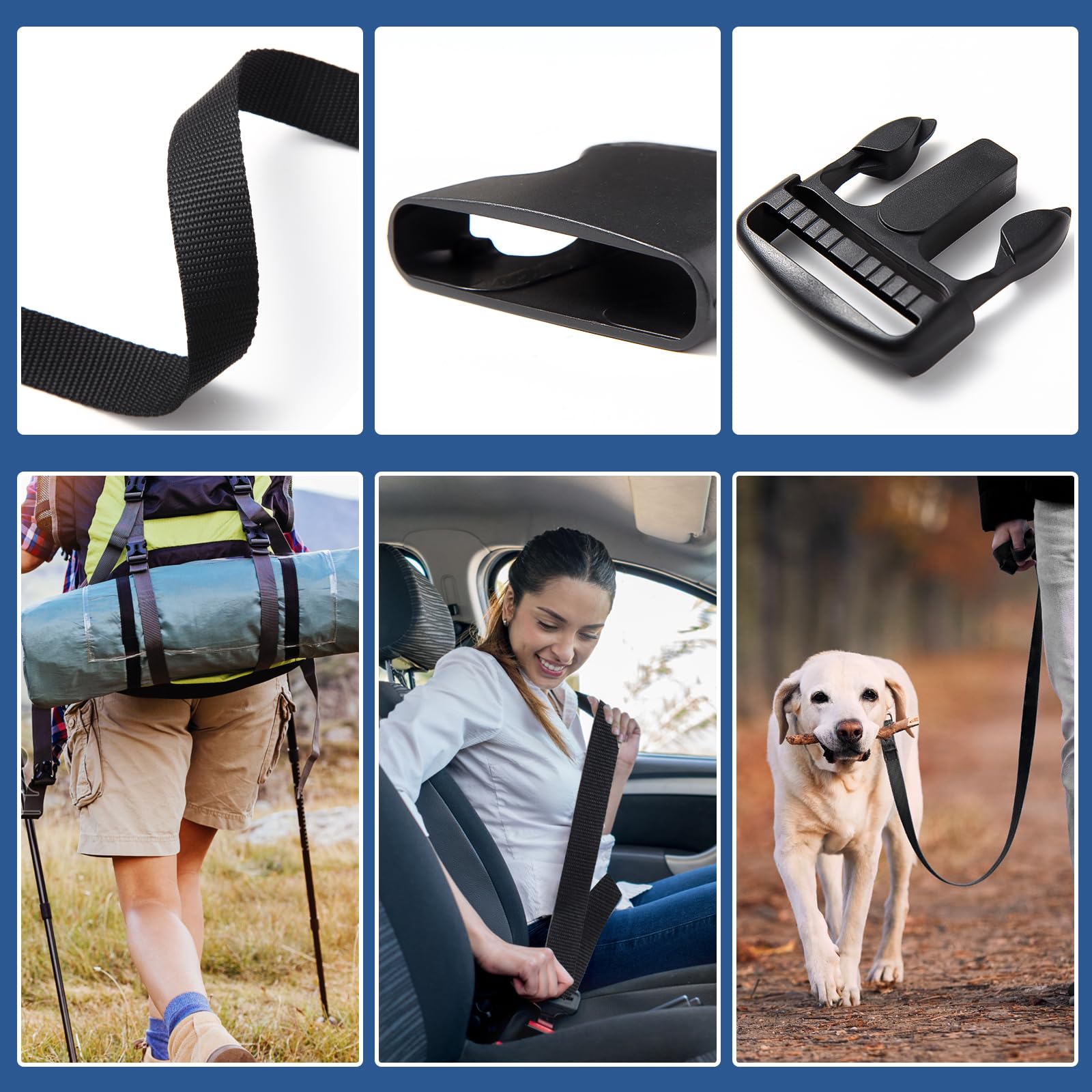🔥1. Perfect Match: You will receive a 6-yard long and 2-inch wide nylon webbing, made from high-strength material with a thickness of 0.6 inches. It comes with 3 adjustable 1-inch side-release plastic buckles and 6 2-inch tri-glide slide clips, making it perfect for all your DIY projects.