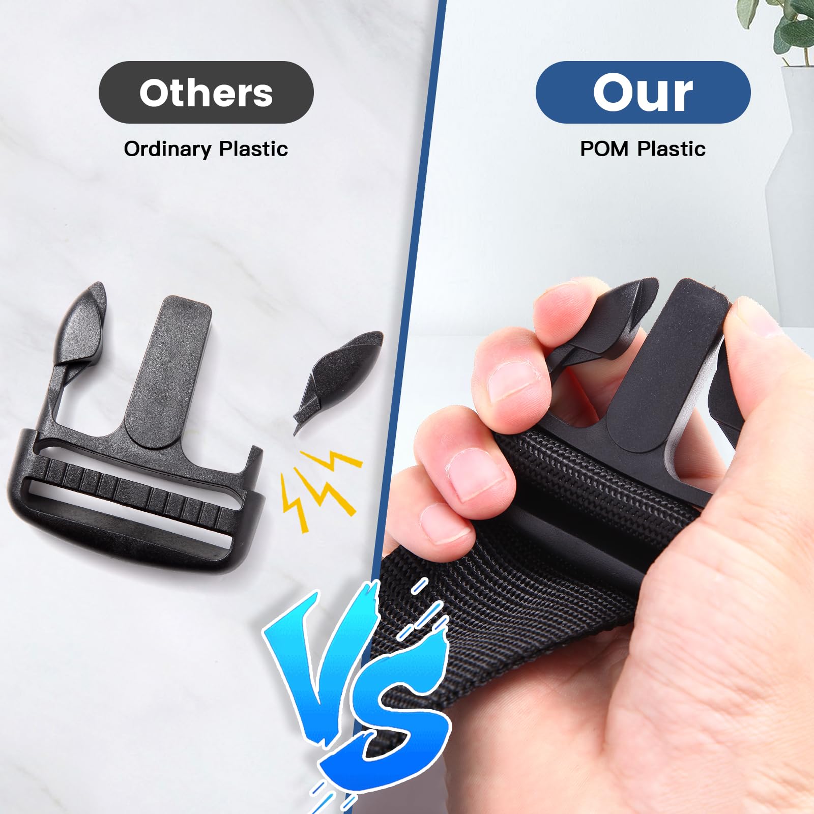🔥4. High-Quality Webbing: Our webbing is incredibly strong with a tensile strength of up to 100 pounds. They are made from heavy-duty military-grade polyoxymethylene (POM) buckles/clips and polyamide (nylon) fabric webbing, ensuring maximum reliability and durability.