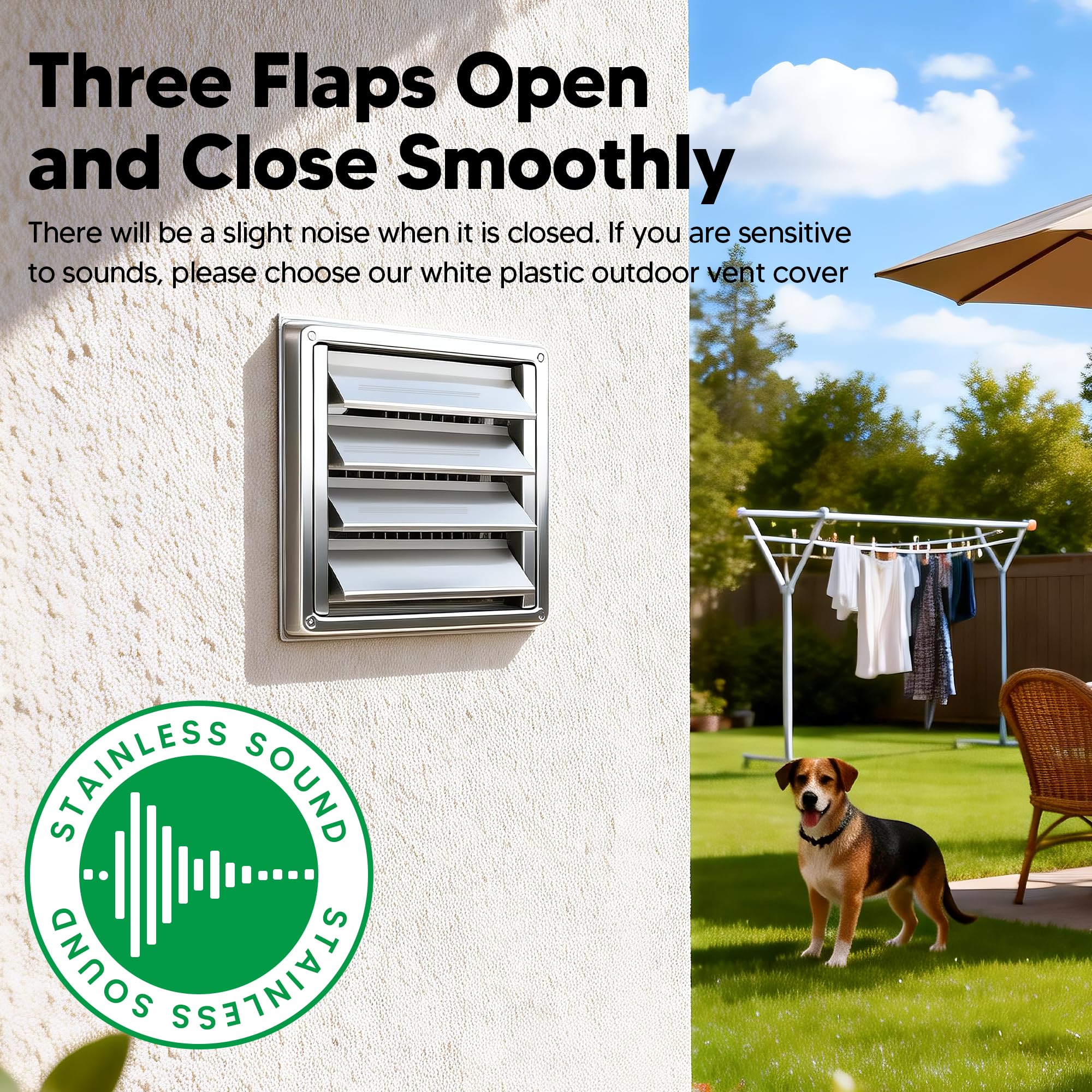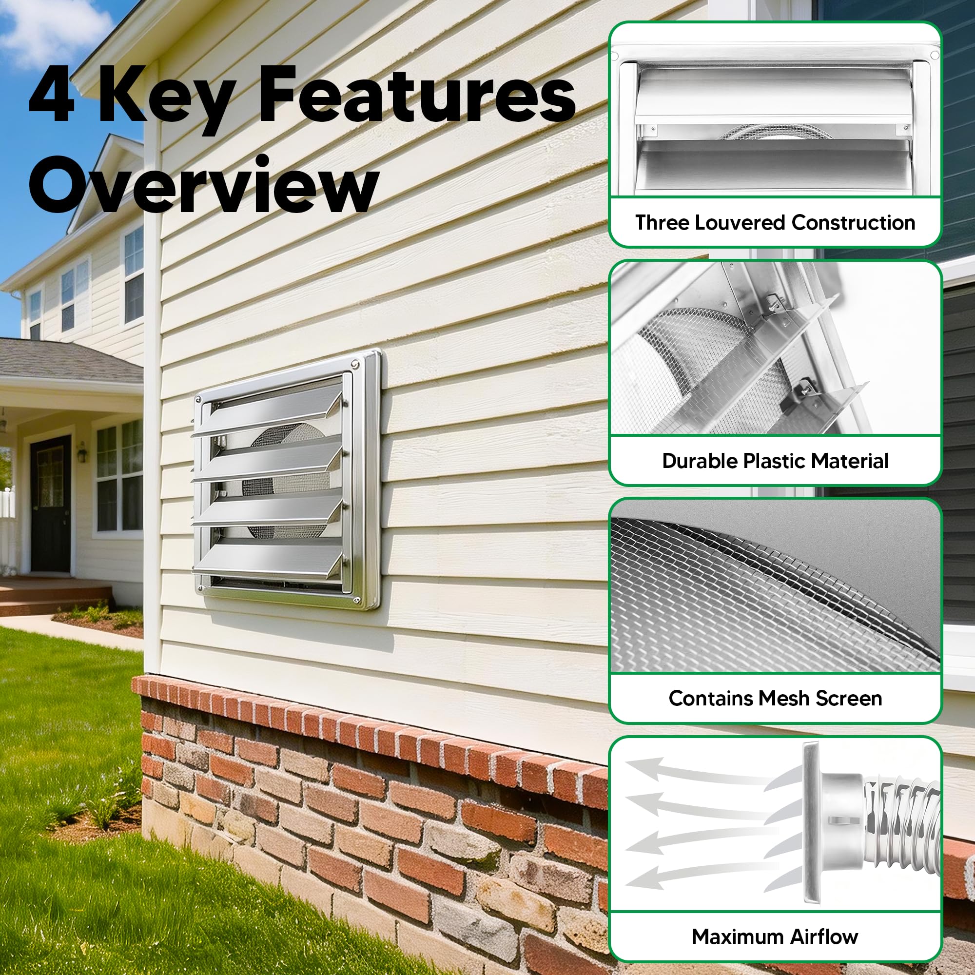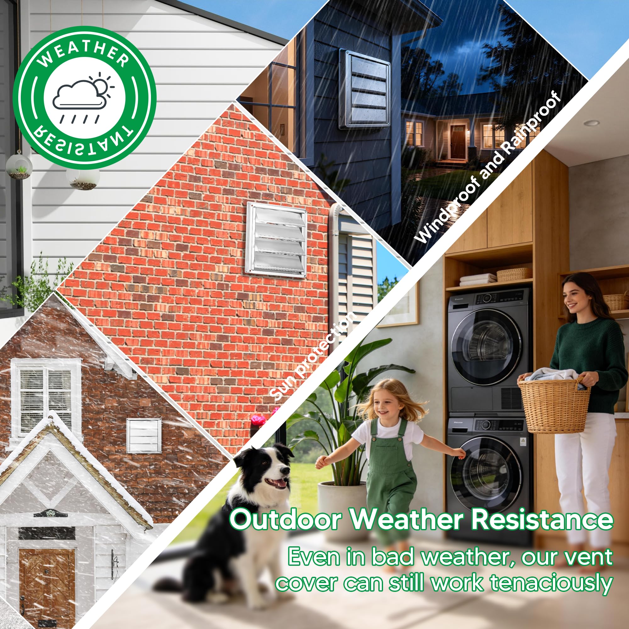 EASY TO INSTALL: In order to make the installation easier, we have equipped each vent cover with 4 screws. Just inserting the vent hose into the louvered vent cover, then you only need to mount it on the wall with screws and silicon seal. You can also use a marker to record the positions of the 4 screw holes on the wall according to the size of the ventilation cover, and use an electric drill to drill the holes. Just minutes to do that, also easy to remove and clean