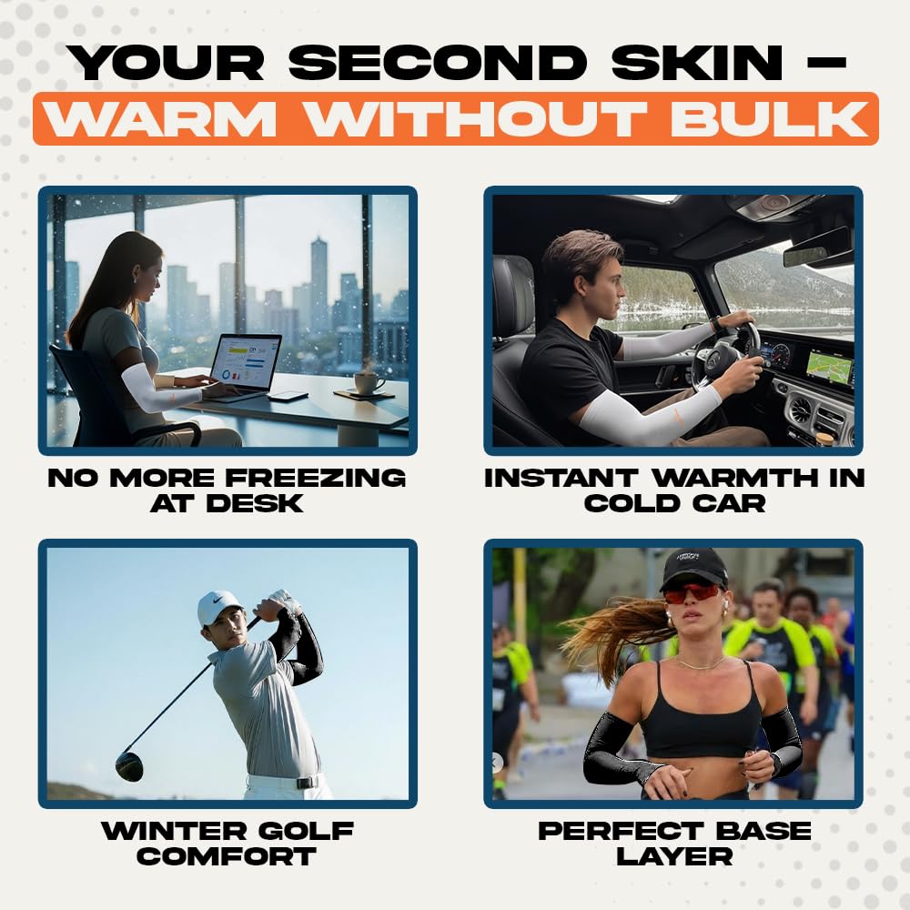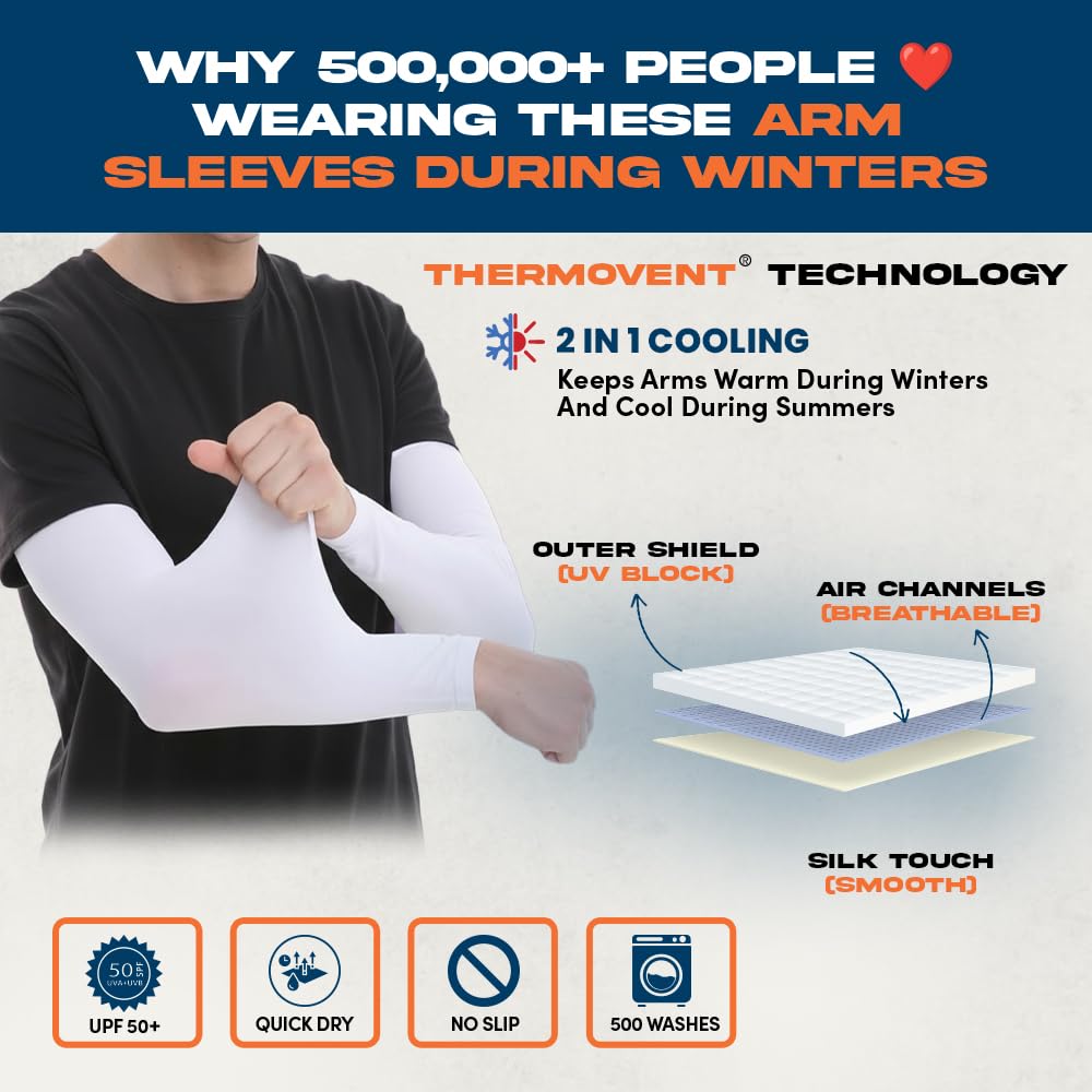 SKIN TEMPERATURE DOWN 2 DEGREES CELSIUS : In summer, definitely feel cool when these sun sleeves on, but in winter, it can make your arm warmer too , yes , it is so amazing.99.8% UV Protection, got no sunburn or bug bites. Not easy to cause bacteria, fast sweat kick-away and fast dry, make your skin fresh all day