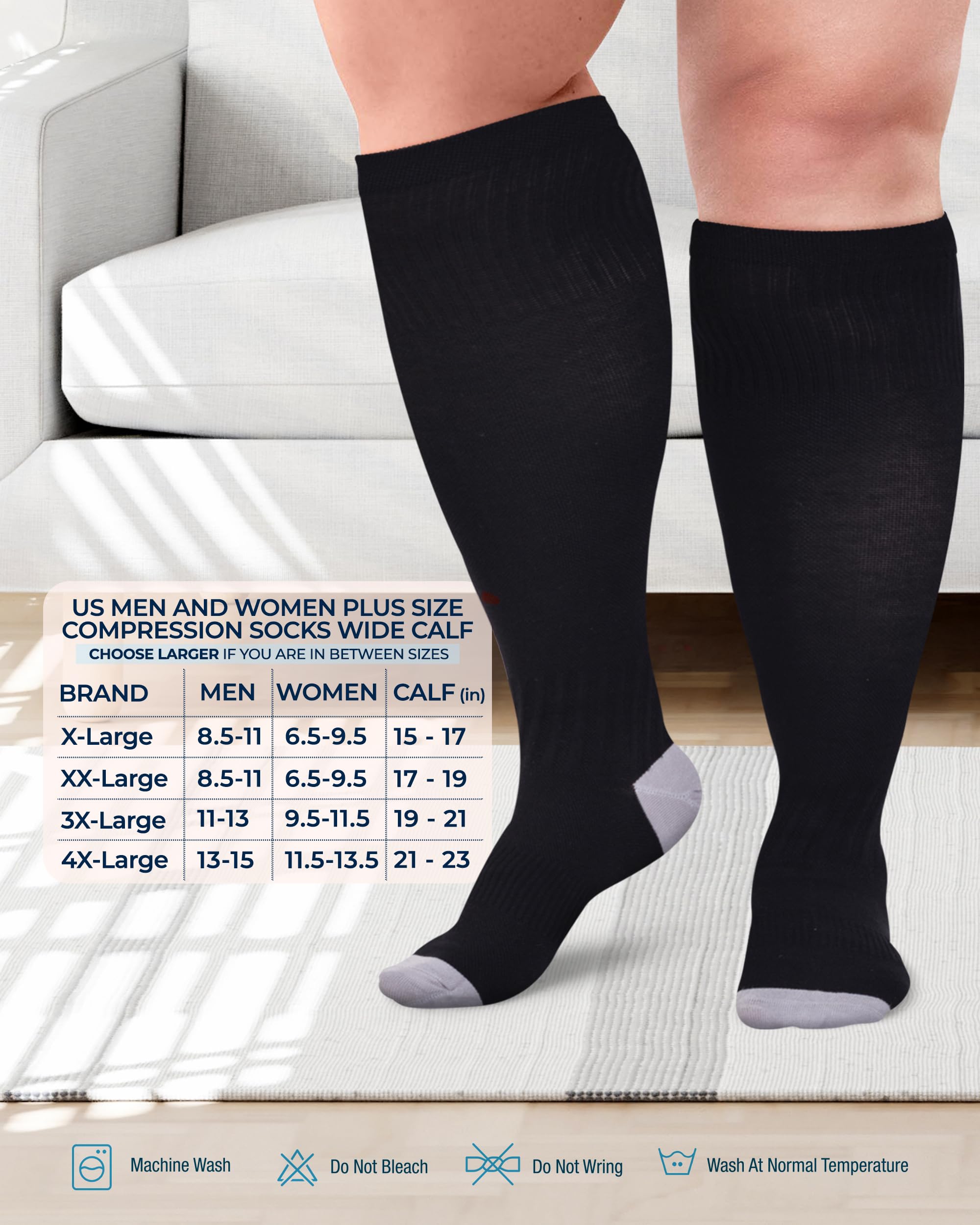 Plus Size Relief - Experience relief from foot discomfort. Featuring graduated compression, these compression socks for plus size women and men aim to enhance blood circulation while easing aches and pains.