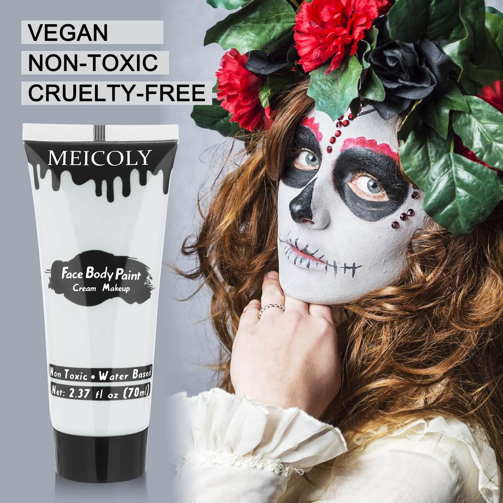βSafe Ingredient: MEICOLY face body paint is infused with gentle and safe formula,it is Paraben Free and Gluten Free,not itch,crack or irritate the skin,safe for kids and adults to do face painting.Not tested on animals,the ingredient is vegan and cruelty-free,gentle face paint for sensitive skin.Notice:As with all cosmetics we advise that a small skin patch test is done before applying as everyone's skin is different