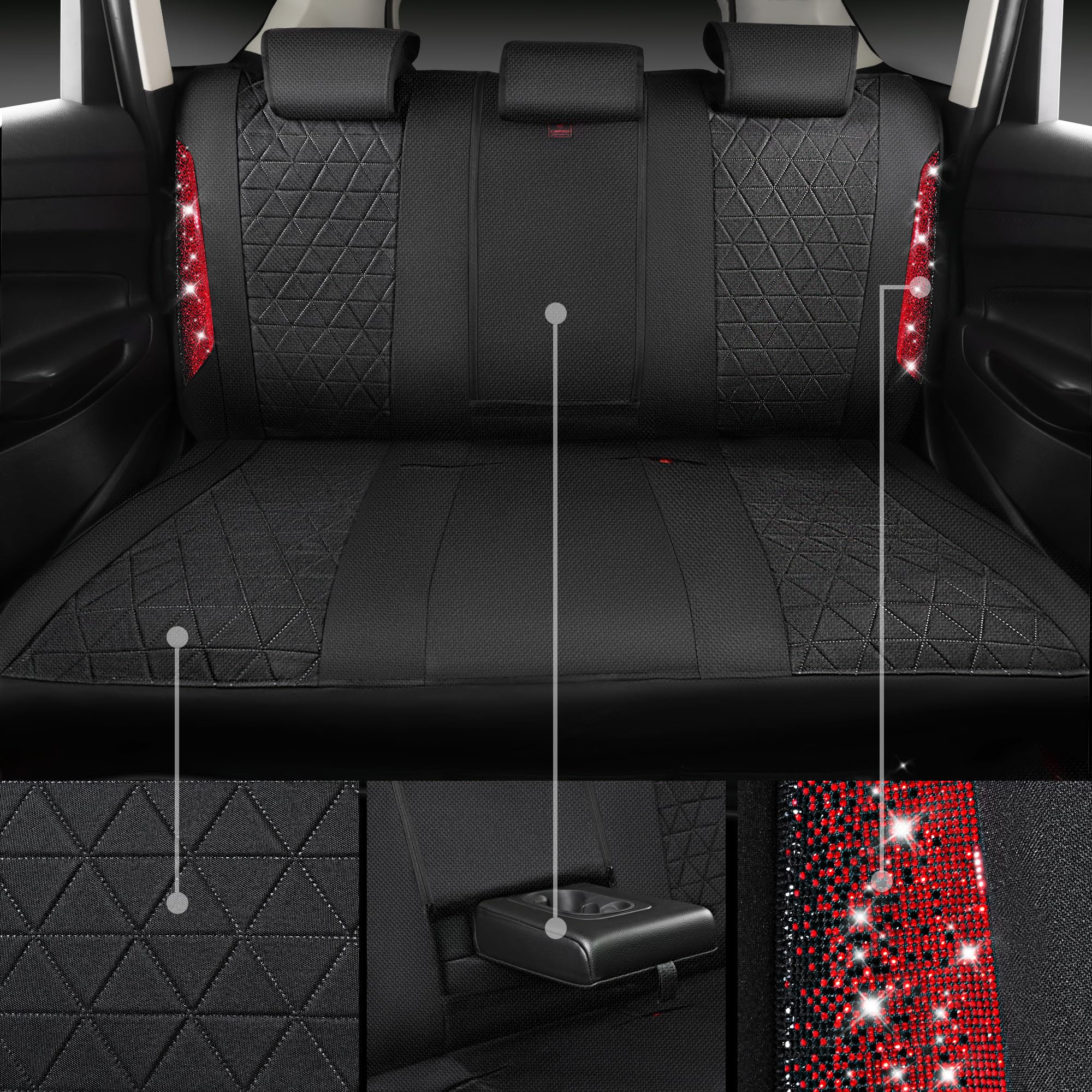 BLING CORDURA CAR SEAT COVER: Premium oxford with pretty red rhinestones made. Luxury black oxford with shiny rhinestones, perfect for women, girls. Perfectly match your car's interior look. Ensure your seats of your car will last for many years to come. Refresh your interior look. Beautiful design with good quality. Top grade diamond craftsmanship, firm and not falling off.