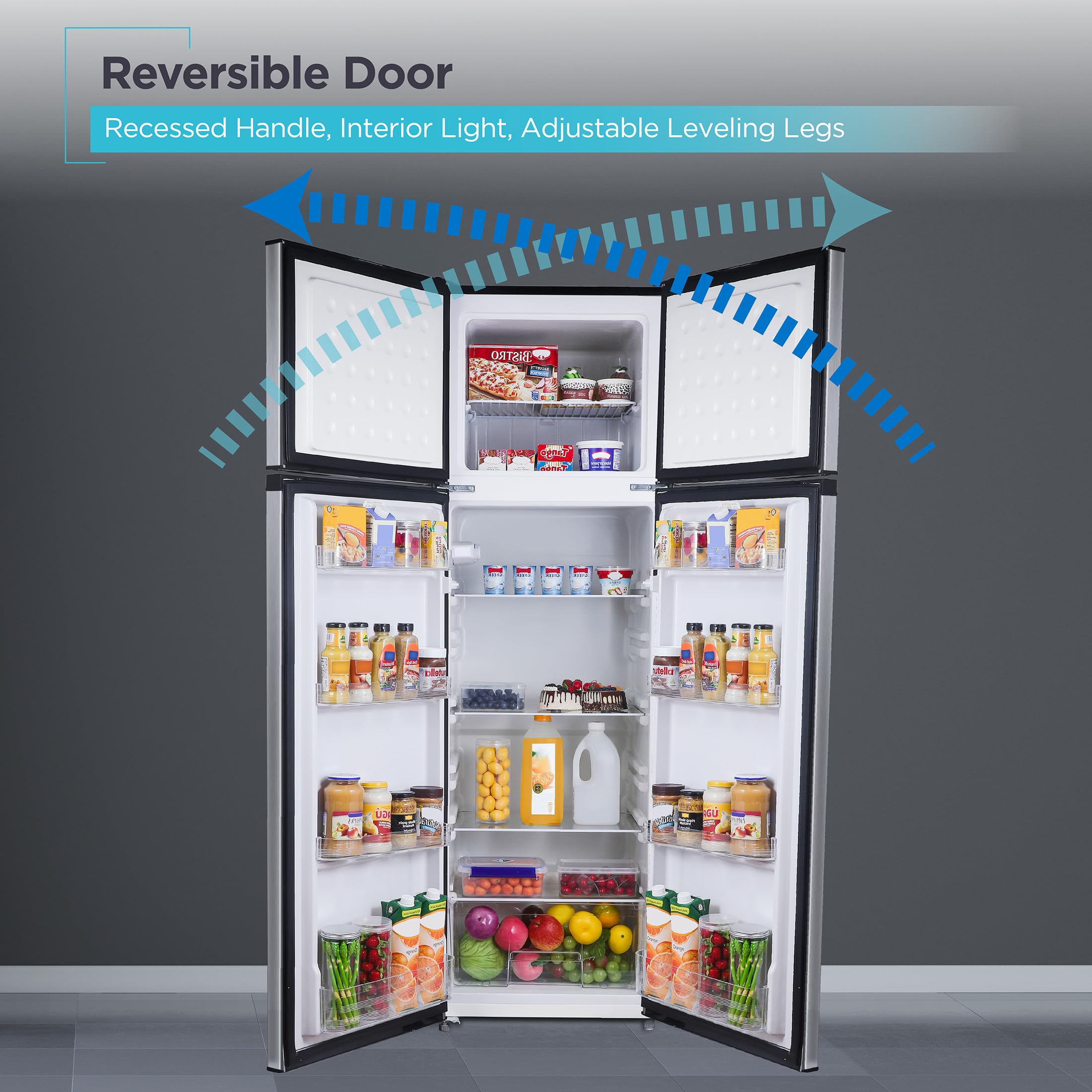 Reversible Doors: Both the freezer door and refrigerator door are reversible to accommodate left or right swing options that best suit your kitchen setting and applications