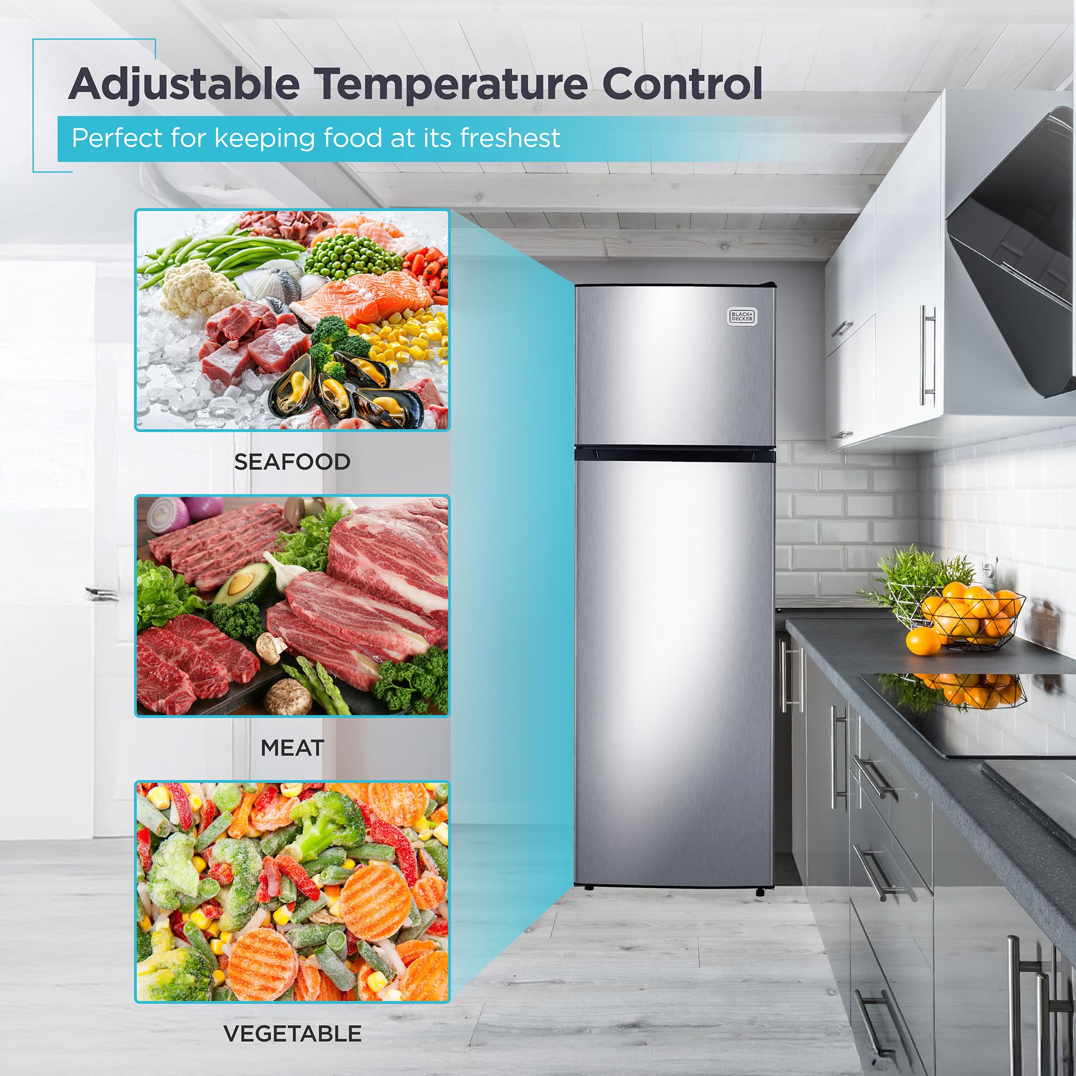 Adjustable Temperature Control: Maintain optimal freshness with the adjustable temperature control feature. Set the perfect cooling levels for both the refrigerator and top freezer sections