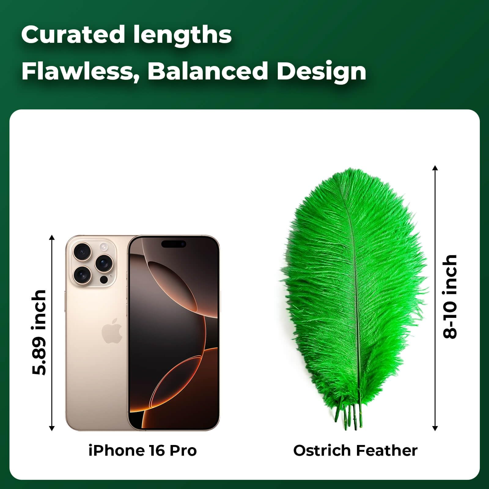 ❤Large Green Feathers: Each feather is between 8-10 inch long from the bottom to the top. 20 pcs Green Ostrich Plumes in 1 pack. All feathers are dyed.
