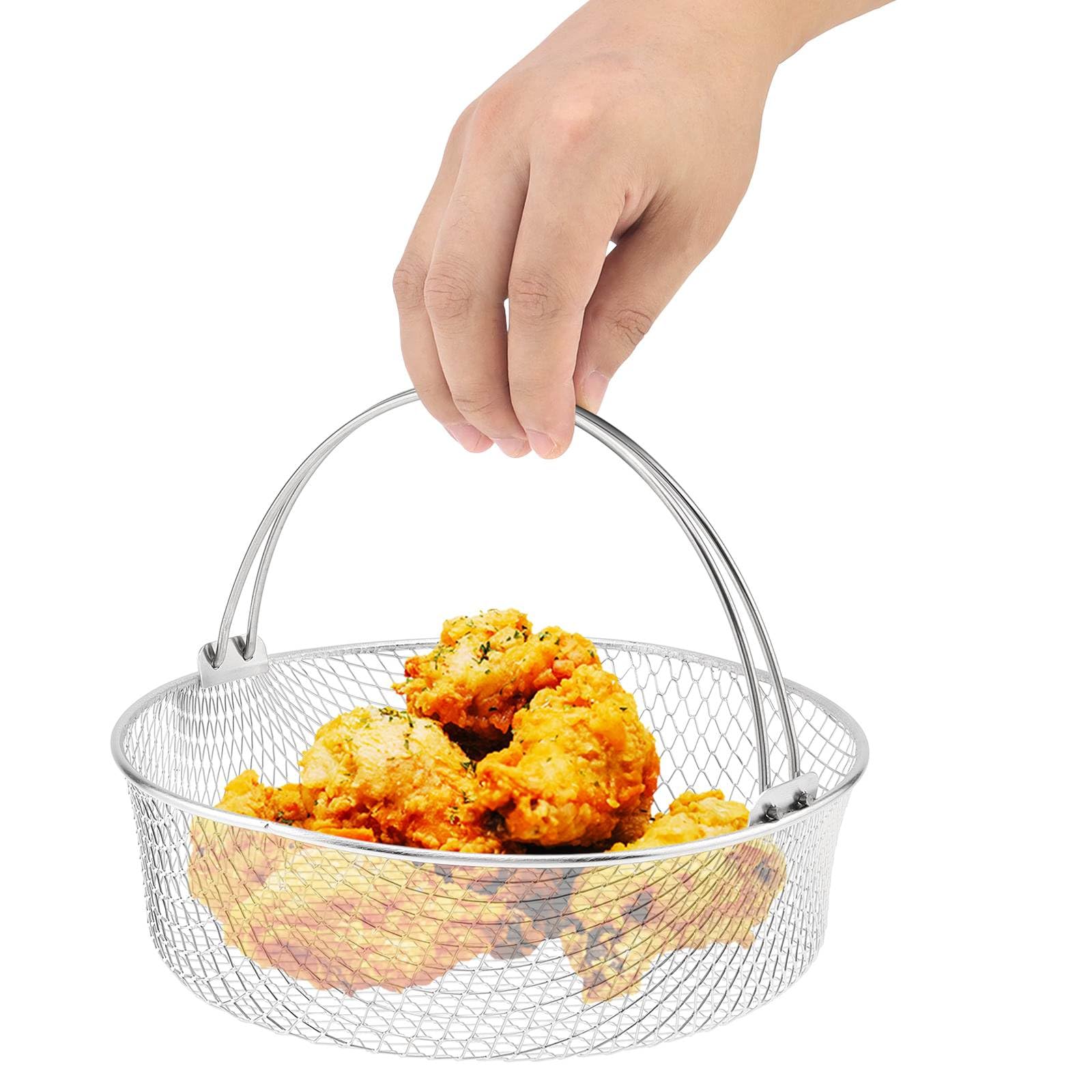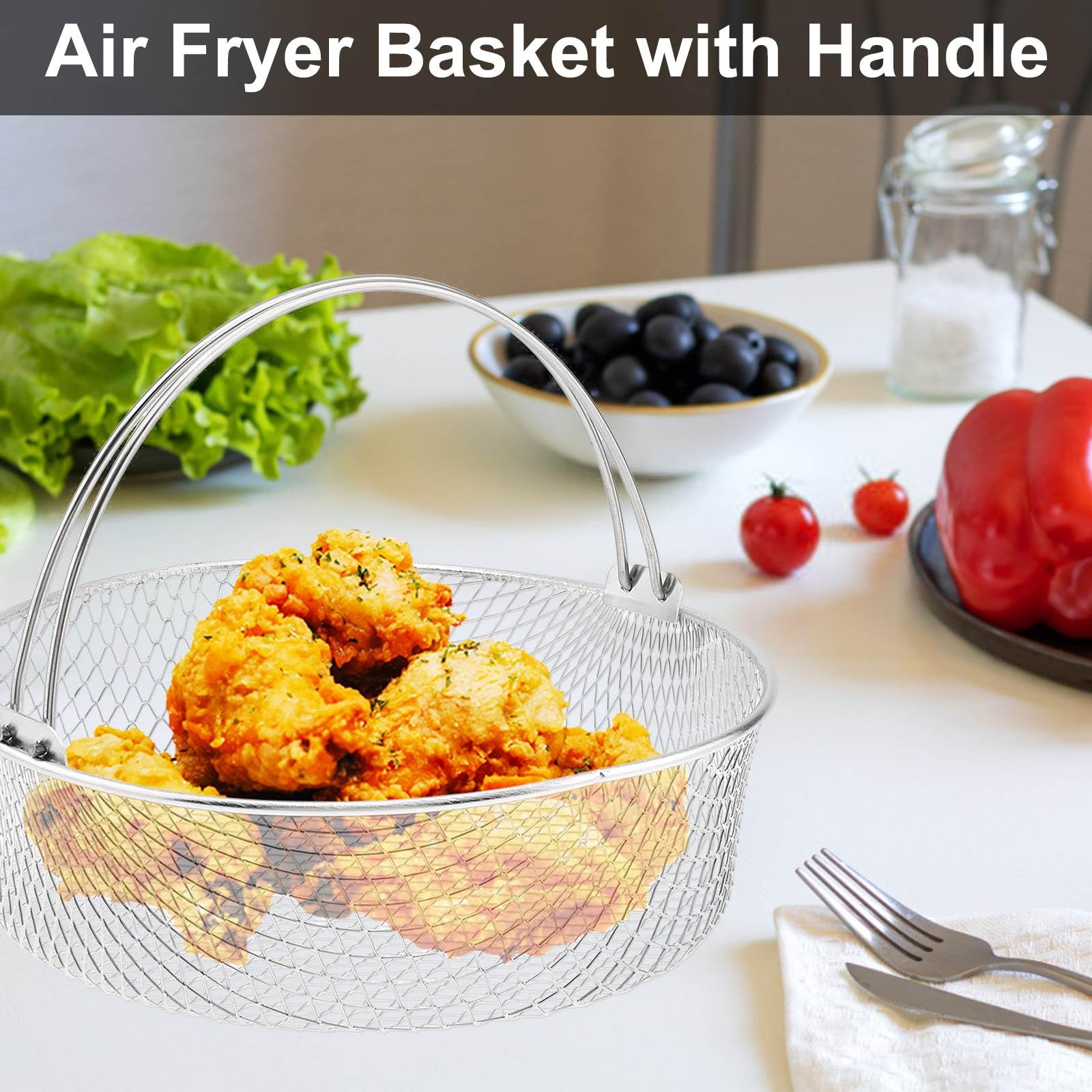 Air Fryer Basket, 8Qt Air Fryer Replacement Accessory Mesh Basket with Handle, 18/8 Round Stainles Steel Steamer Basket for Air Fryer, Instant Pot, Oven, Steamer Basket, Household Frying Food Basket