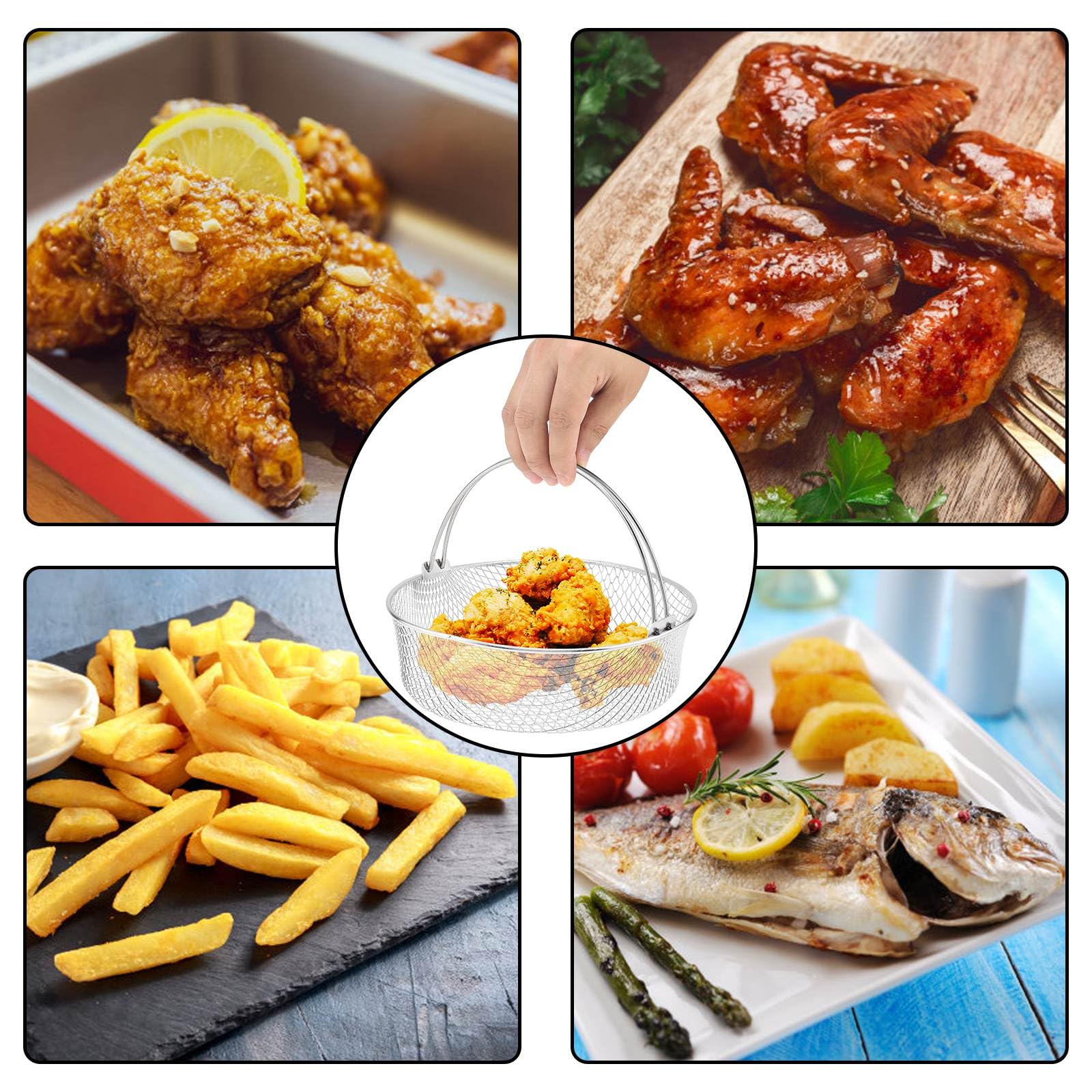 ๐Ÿ’– Versatile Fit for Instant Pot: This 8-inch air fryer mesh basket is designed to perfectly fit both 6QT and 8QT Instant Pots. Its spacious design makes it ideal for a variety of meals, from desserts like cakes, pies, and cookies to savory dishes such as pork ribs, steaks, and pizza. Whether baking, grilling, or frying, this basket is your go-to kitchen tool for preparing delicious meals with ease.