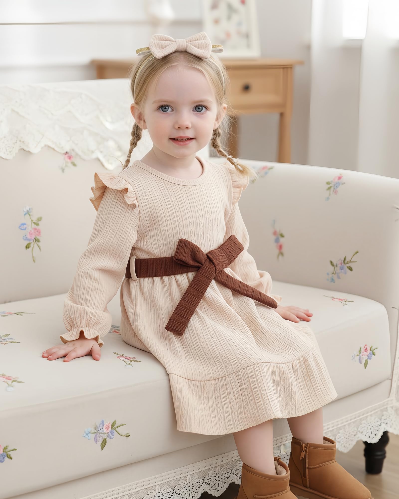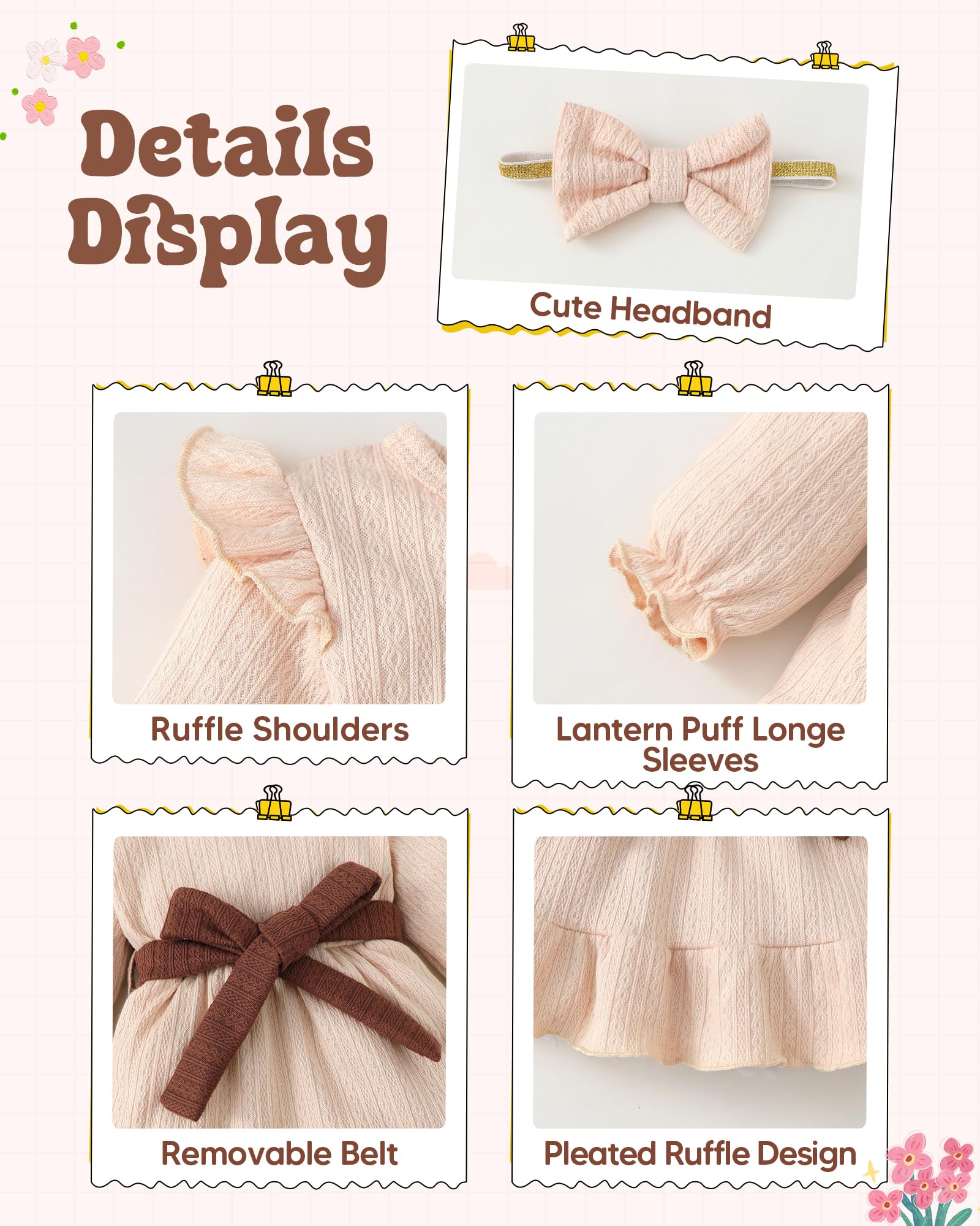 Package includes:1*Long Sleeve dress+1*cute headband+1*waist belt