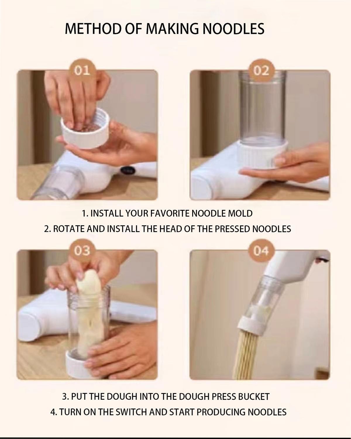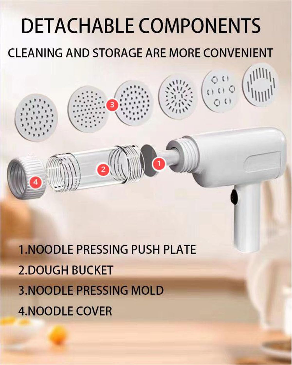 Multi functional shaping plate: equipped with multiple shaping plates, it can make various shapes of pasta, such as wide noodles/thin noodles/flat noodles/hollow noodles/noodles, etc., to meet your cooking preferences.