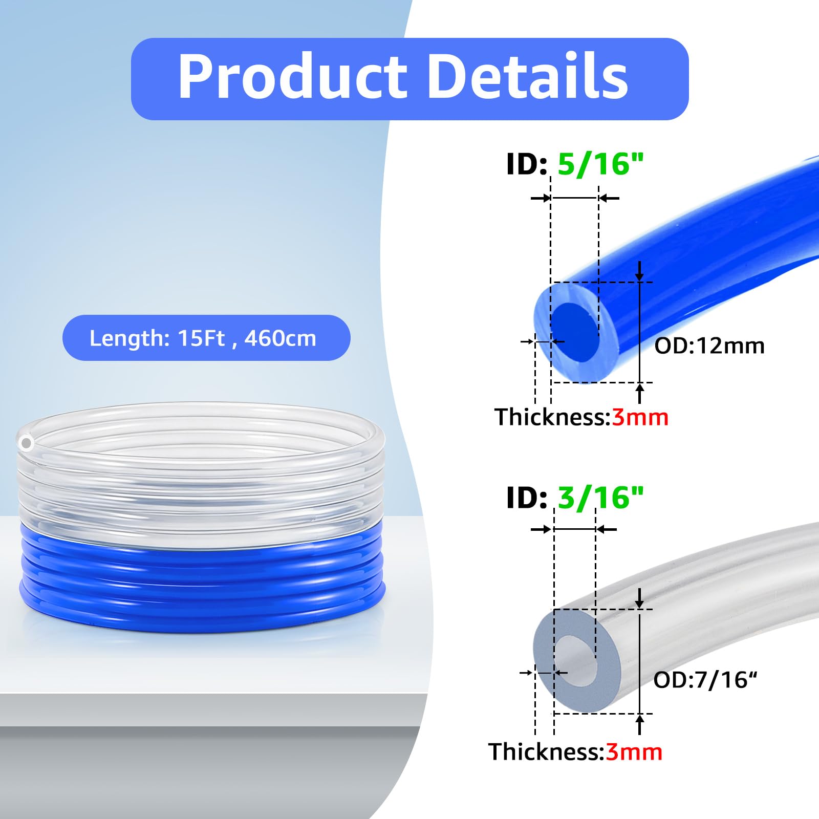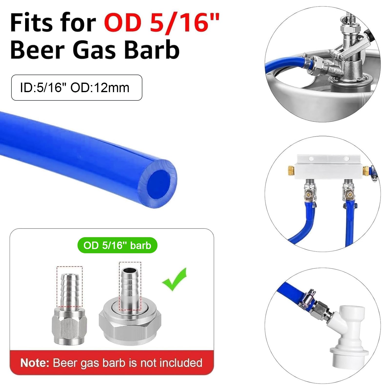 15ft ID 5/16" CO2 Gas Line: Keg gas line is ID 5/16“, fit for OD 5/16” barb fittings. It connects seamlessly to quick-disconnect fittings, CO2 gas manifolds, beer CO2 regulators, and keg couplers to deliver a stable and ample supply of gas for beer and various carbonated beverages. Suitable not only for brewing beer but also for carbonating soda, kombucha, and other delicious drinks, this tubing is an ideal choice for brewing equipment at outdoor picnics, parties, and garden gatherings.