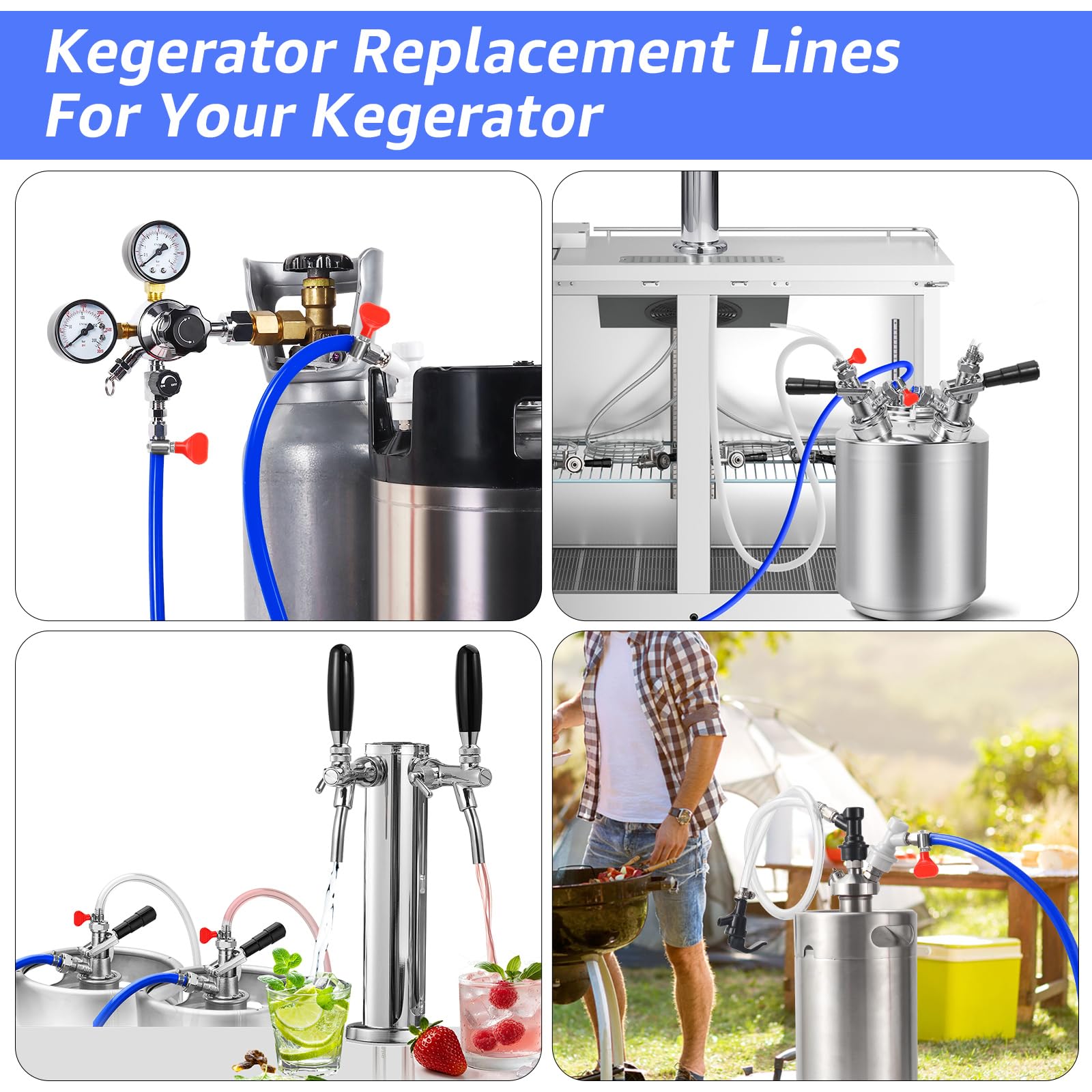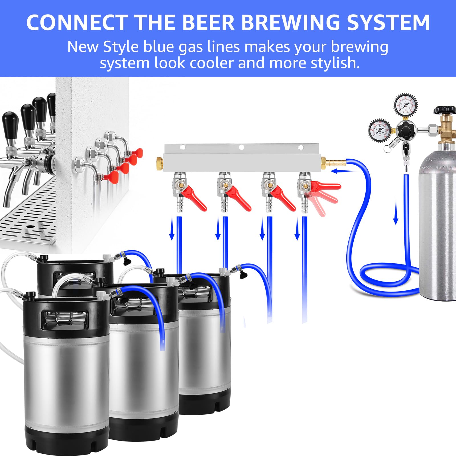 Easy to Cut & Multipurpose Use: The kegerator lines replacement kit can be easily cut to any desired length. By connecting to 2-way, 4-way, or 6-way CO2 splitters, they enable gas line expansion from a single output port to multiple ports. They can also be paired with various dispensing parts to facilitate simultaneous multi-keg dispensing operations, creating a more efficient homebrewing and dispensing system.