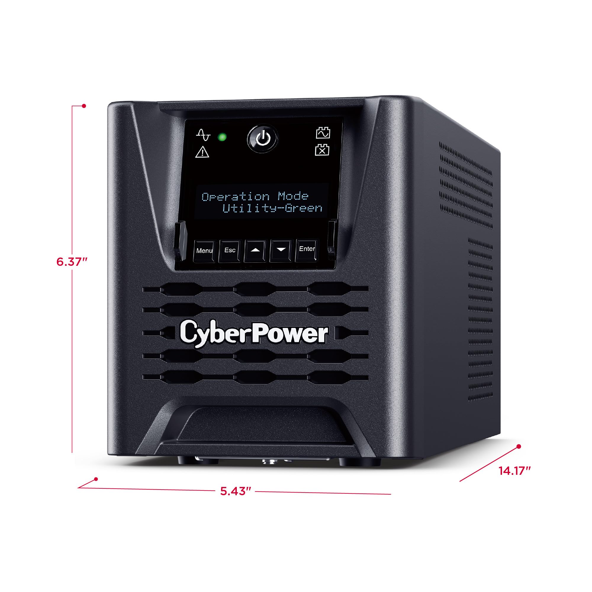 A mini-tower UPS with line interactive topology, the CyberPower Smart App Sinewave PR750LCD3C provides battery backup, power protection (using sine wave output), and surge protection for corporate servers, department servers, storage appliances, network devices, and telecom installations requiring Active PFC power source compatibility. The PR750LCD3C uses Automatic Voltage Regulation (AVR) to correct minor power fluctuations without switching to battery power, which extends battery life. AVR is essential in areas where power fluctuations occur frequently. The PR750LCD3 comes with a three-year warranty (including coverage of batteries) and a $375,000 Connected Equipment Guarantee.
