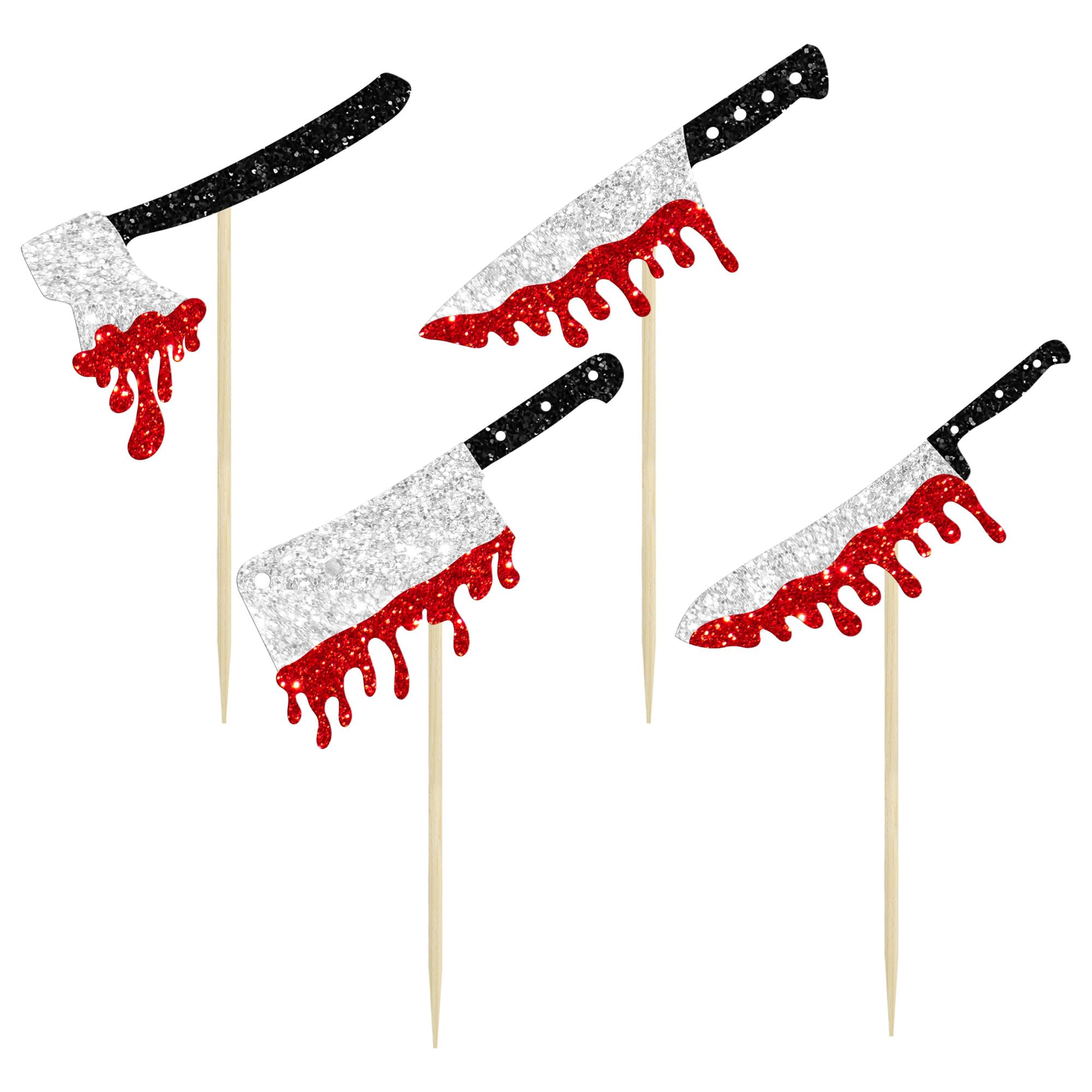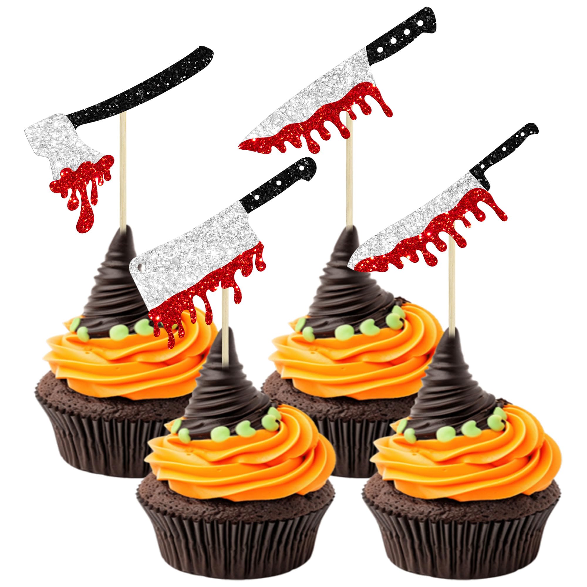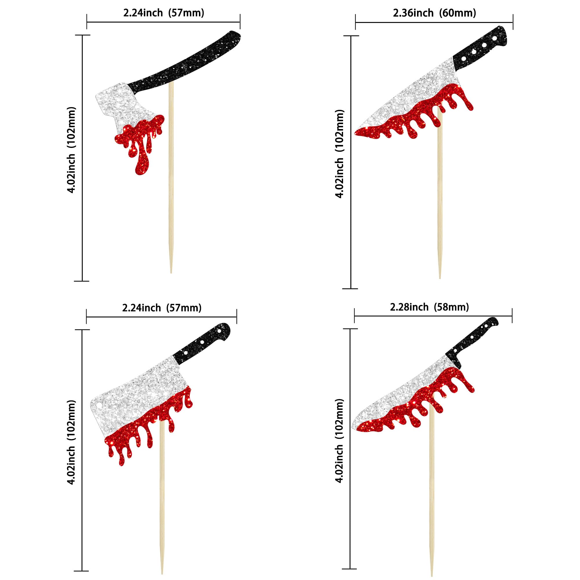 Material and Usage - Usage: They are perfect for halloween theme party, horror classic movie theme party, blood knife theme party, have a killer birthday theme party cupcake decorations, which make the cupcake look tastier and more attractive. - Material: Made of paper material, solid, not easy to deform and fade and can reuse for many times; Please don't put them into oven for they are only decorative and not edible. Package and Size - Package: Pack of 24Pcs. Size: W 2.4"*H 4.4"/W 6.2*H 11cm(Include Stick). Comes with assembled, so you can insert into your cake directly, which make your cake more interesting. - If you want to return the item, please kindly contact us first, then we will deal with it until you are satisfied. Note 1.The cupcake topper picks have pointed end, please keep away from children when using. 2. These cupcake toppers are for decoration purposes only, not edible and do not place in oven or use for baking. 3. Due to the light and screen difference, the item's color may be slightly different from the pictures.