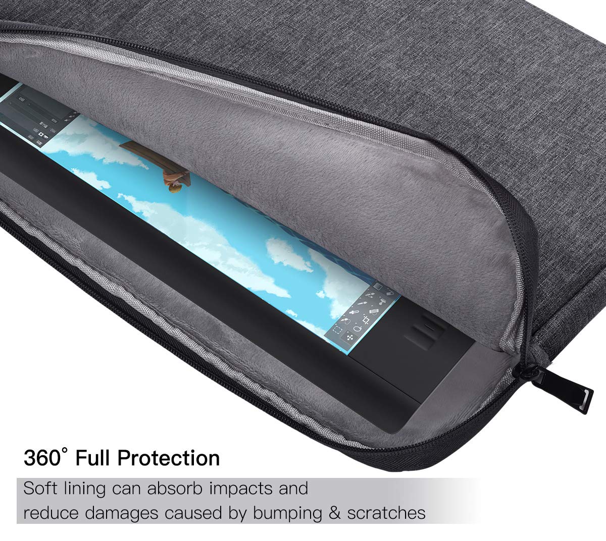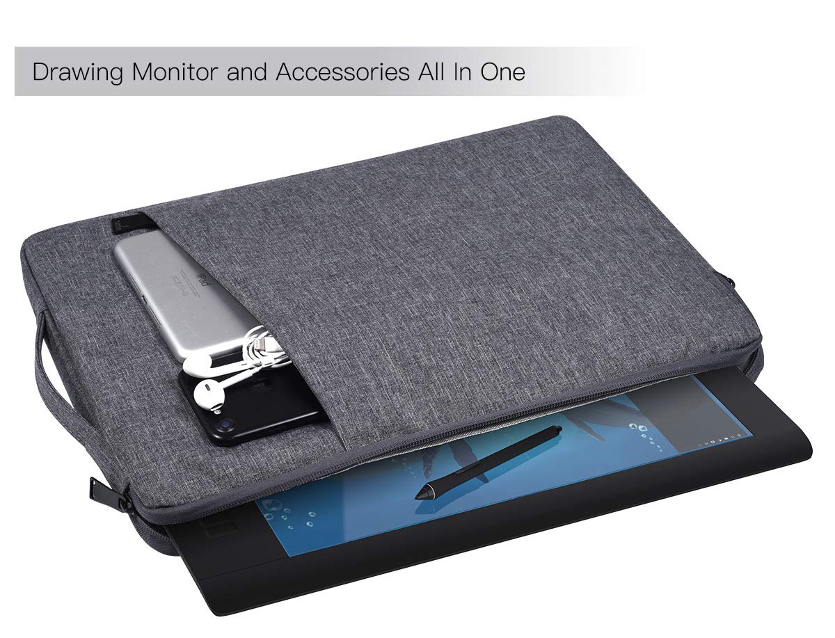 【Water Resistant & Slim Lightweight】The drawing tablet sleeve bag made of high-quality waterproof Canvas fabric, which obstructs water and vapor effectively. Don't worry about your laptop and accessories splashing water or rain. Super slim and lightweight, it can easily be transported inside another bag, backpack or briefcase.