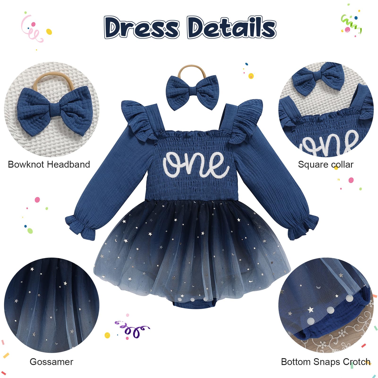 Occassion: Baby girls princess 1st birthday clothes is a best choice for 1st birthday party. Baby rompers girl tutu dress suitable for many occasions, such casual, family parties, one birthday party, baby photo, baby shower gifts, festival, fall/winter daily life etc.