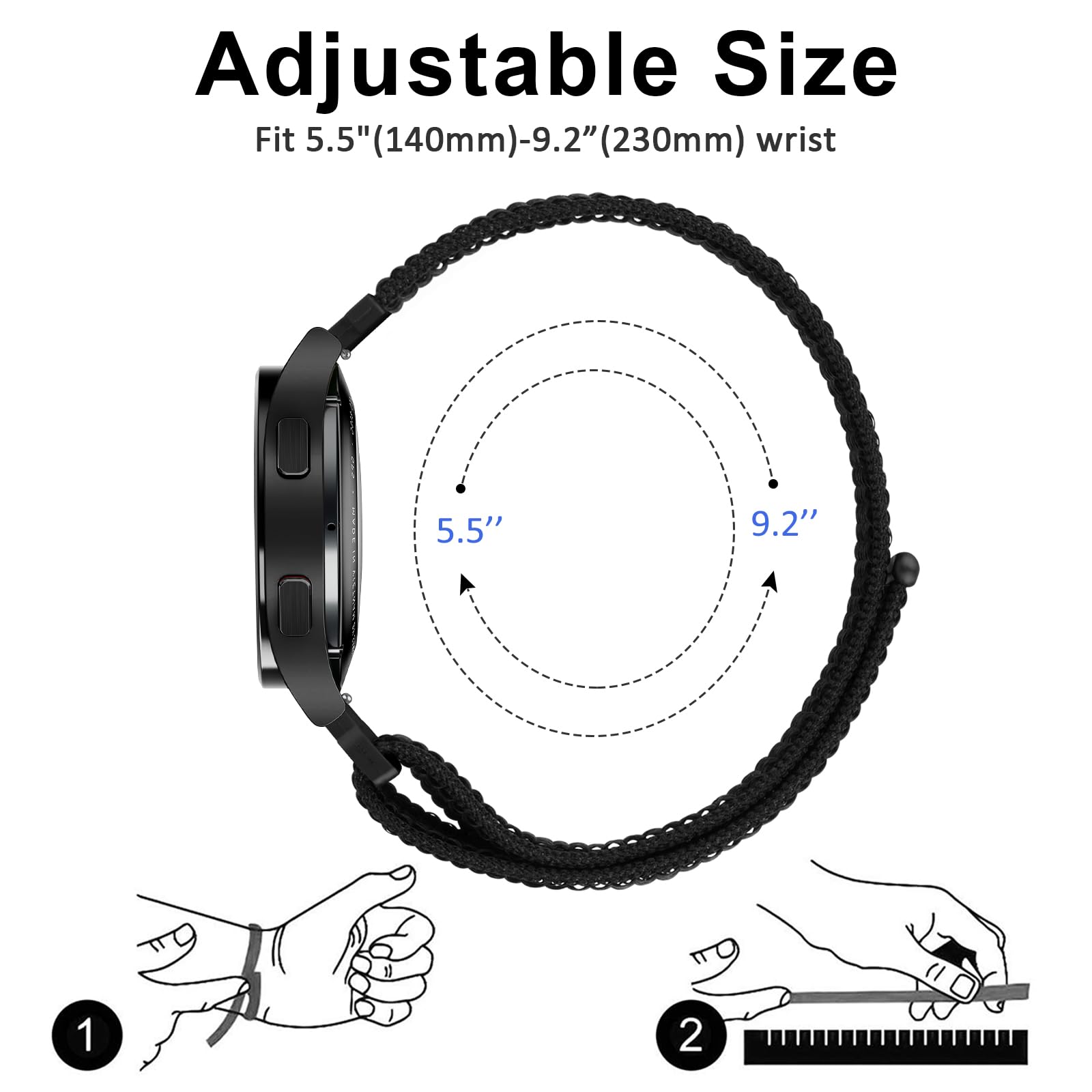 【Unique Design】Garmin Forerunner 255 watch bands / Garmin Forerunner 265 watch bands with a sturdy hook-and-loop fastener, double-reinforced to prevent smartwatch from falling. The stretchy elastic soft nylon wristband with a loop clasp for quick and easy adjustment. Suitable for 5.5"- 9.2" (140mm-230mm) wrist