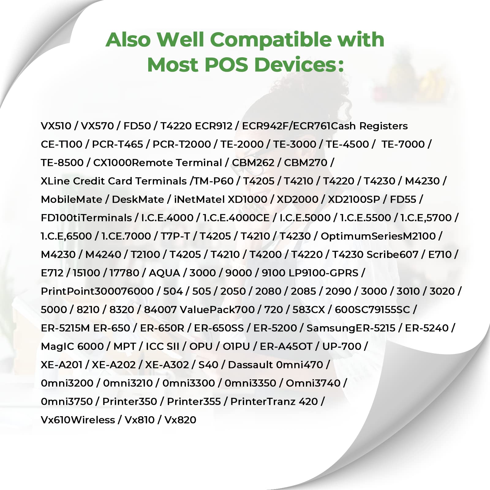 [Universal Compatibility] Compatible with First Data FD50 FD55 FD130 T4220 T4230, Verifone VX510 VX570 VX610 VX810 VX820, Hypercom ICE Series T7P-T T4205/4210/4220/4230, Optimum Series M2100/4230/4240 T2100/4205/4210/4200, Casio CE-T100 PCR-T465 PCR-T2000 TE-2000/3000/4500/7000/8500 and more