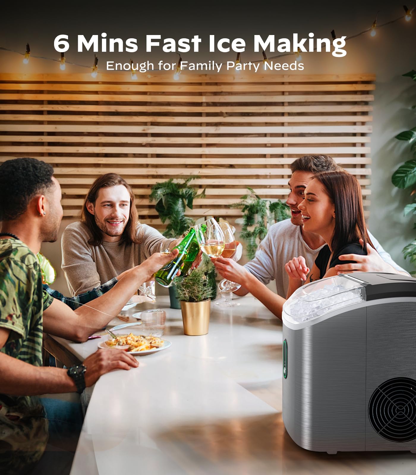 Compact and Portable Design: Measuring just 11.3″ W x 8.66″ D x 12.68″ H, our nugget ice maker is compact enough to fit seamlessly on your countertop. Perfect for home, office, or parties, you can easily take ice maker anywhere to enjoy refreshing frozen treats with friends and family