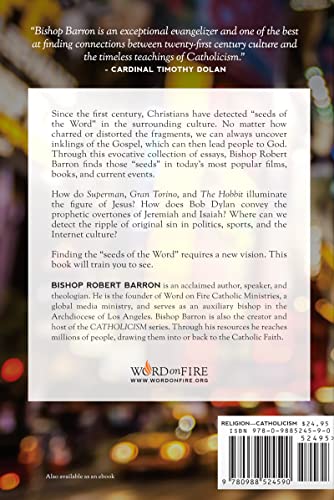 Since the first century, Christians have detected "seeds of the Word" in the surrounding culture. No matter how charred or distorted the fragments, we can always uncover inklings of the Gospel, which can then lead people to God. Through this evocative collection of essays, Bishop Robert Barron finds those "seeds" in today's most popular films, books, and current events. How do Superman, Gran Torino, and The Hobbit illuminate the figure of Jesus? How does Bob Dylan convey the prophetic overtones of Jeremiah and Isaiah? Where can we detect the ripple of original sin in politics, sports, and the Internet culture? Finding the "seeds of the Word" requires a new vision. This book will train you to see. "Seeds of the Word: Finding God in the Culture" sheds new light on the influence of the Gospel in modern culture. Catholic books like these give you the tools to inspire a new vision and present a new lens on how to examine existing popular media, literature, and culture. Comprehensive Christian Books: These influential books by Bishop Barron will train you to find God, and explore theology and religion in the culture, and surrounding current events. Bishop Barron’s inspirational writings show the vast influence of the Gospel on existing culture, and how the teachings of the Church can be found anywhere. Renowned Spiritual Books: A religious book in which Bishop Robert Barron explains how God is present in today's most popular films and books; for example, the figure of Jesus was illuminated in Superman, Gran Torino, and The Hobbit. About the Author: Bishop Barron has published numerous bestselling Amazon books, essays, and articles on theology and spiritual life; he is the founder of the Word on Fire Catholic Ministries and is an Auxiliary Bishop of the Archdiocese of Los Angeles. Proclaiming Christ: Word on Fire Catholic Ministries supports the work of Bishop Robert Barron, which aims to highlight Roman Catholic history, spread the message of Jesus Christ, and to manifest the spirit of Christ to the masses.
