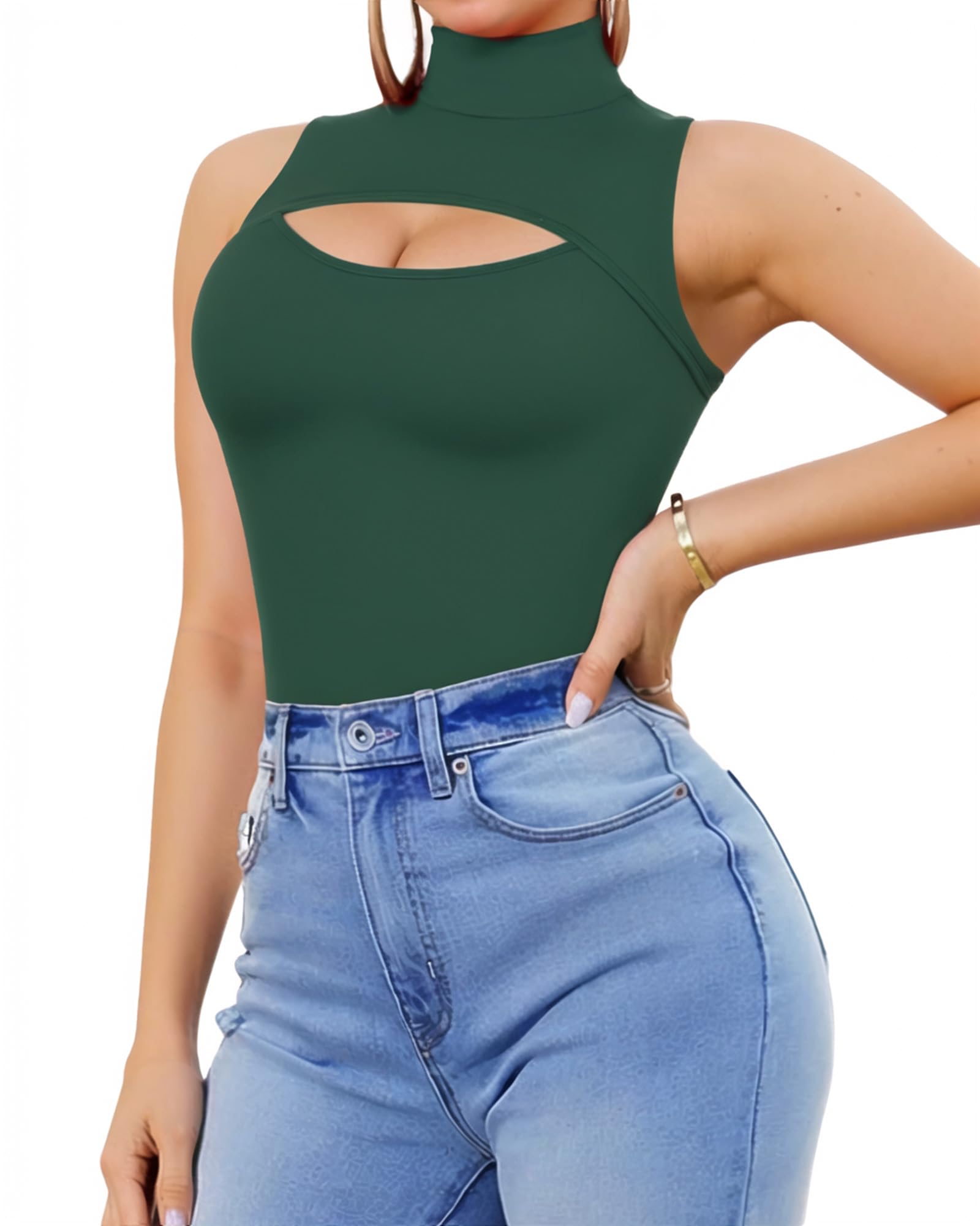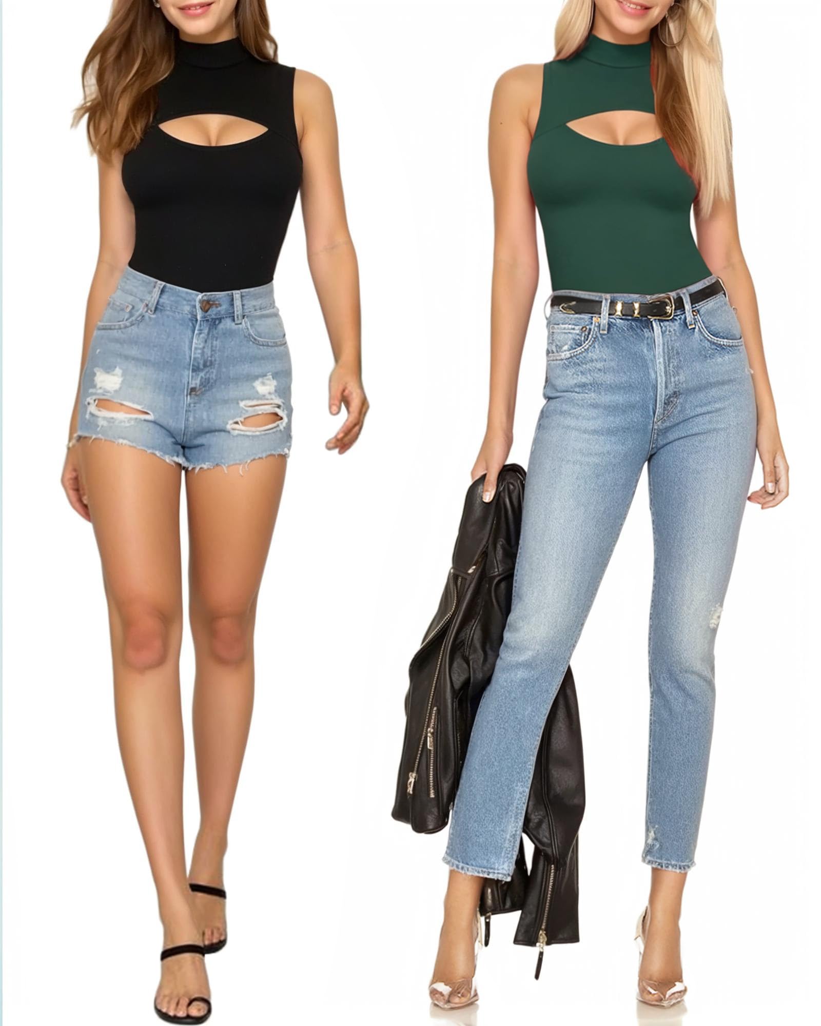 Styling: Sleeveless body suits boast a stretch-fitted style with a mock neck and cut out detailing, offering a slim fit and exuding a casual yet graceful fashion vibe, easily paired with pants, shorts, jeans, skirt, and more