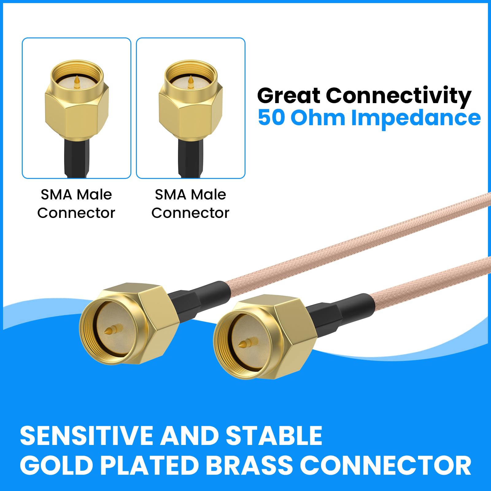 Connector Type: All-copper SMA Male to SMA Male.